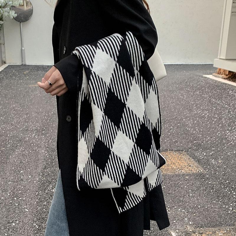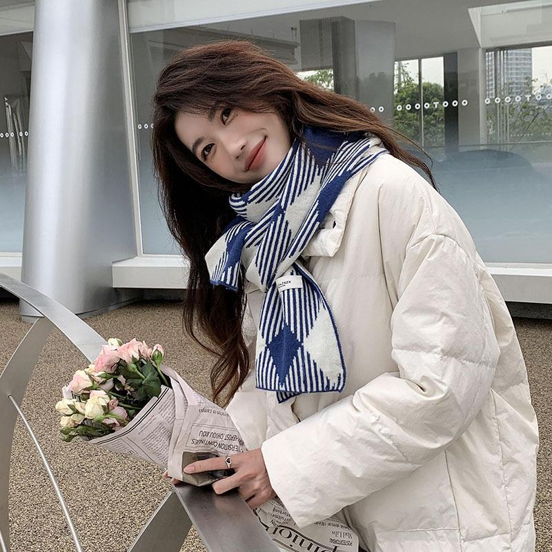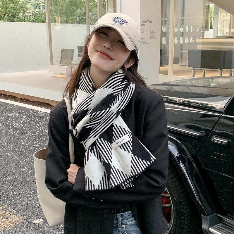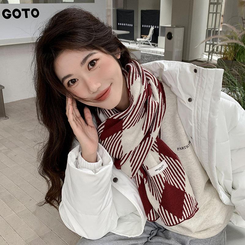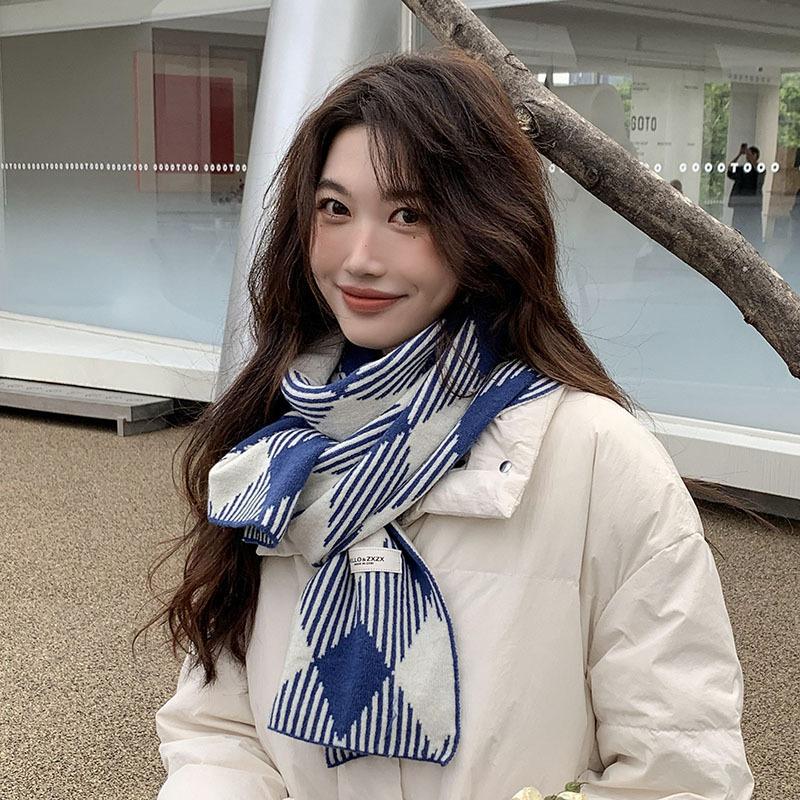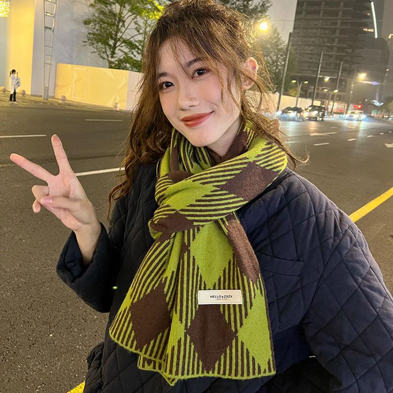 Bufanda rómbica roja para mujer, bufanda de moda de nicho para todo fósforo, pequeña, fresca, para parejas de estudiantes, otoño e invierno, cálida y fría.