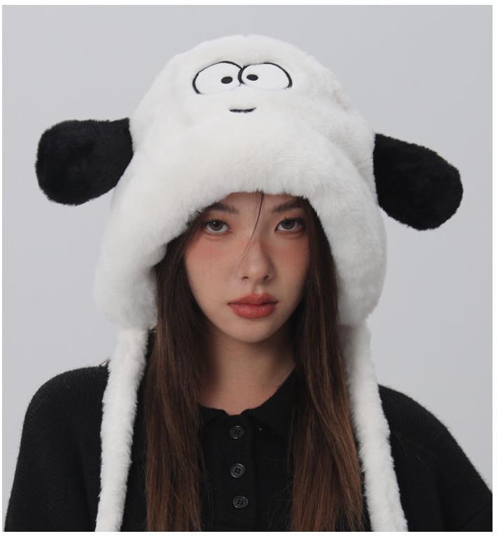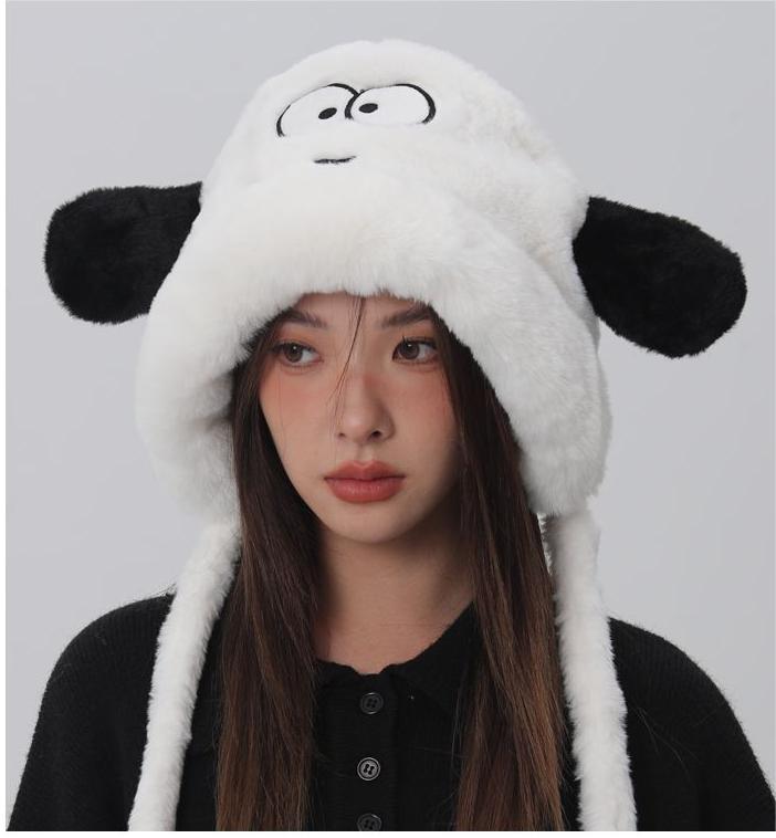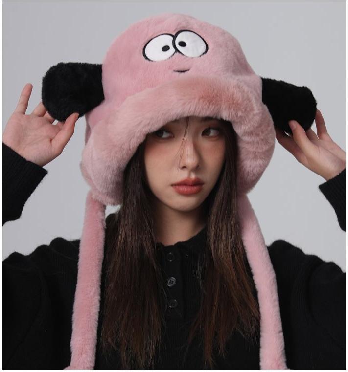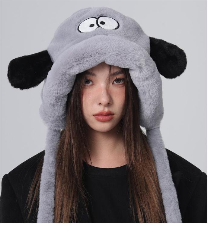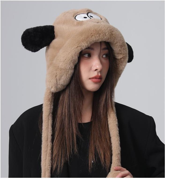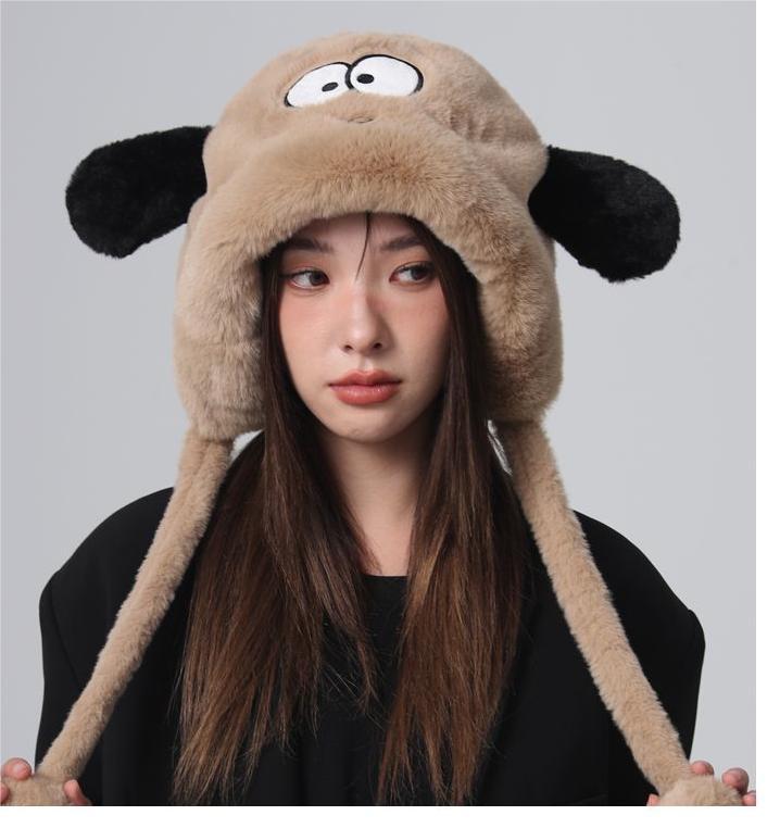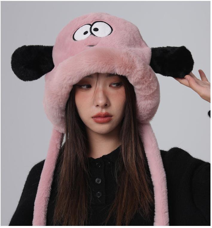 Lindo gorro de felpa de cachorro para mujer invierno ciclismo cálido niña orejeras blanco peludo gorro Lei Feng celebridad de Internet