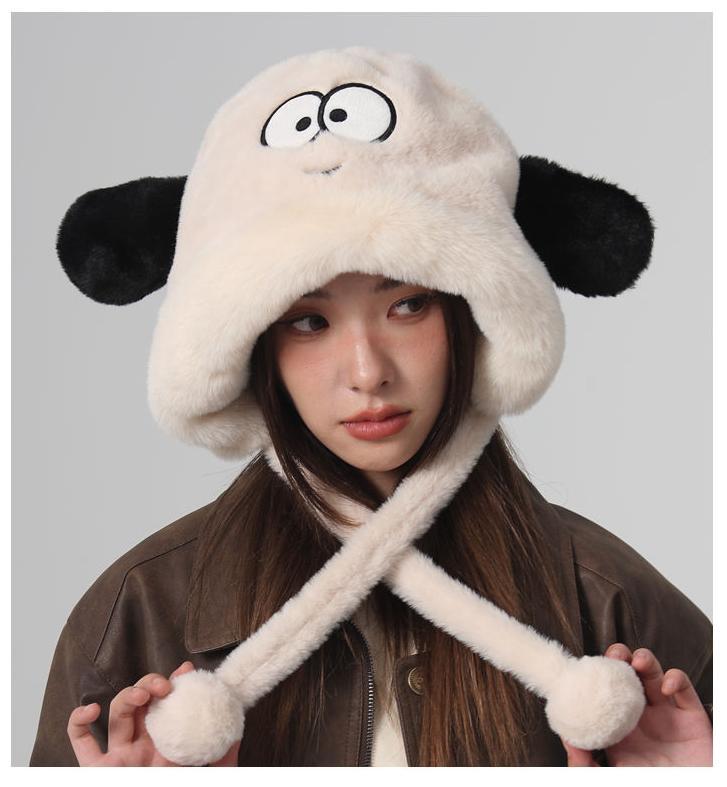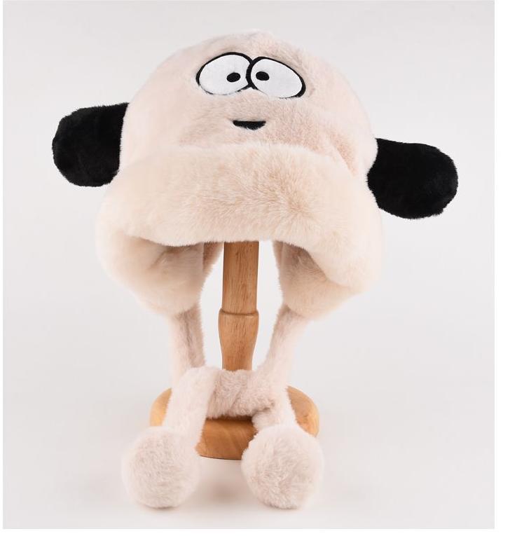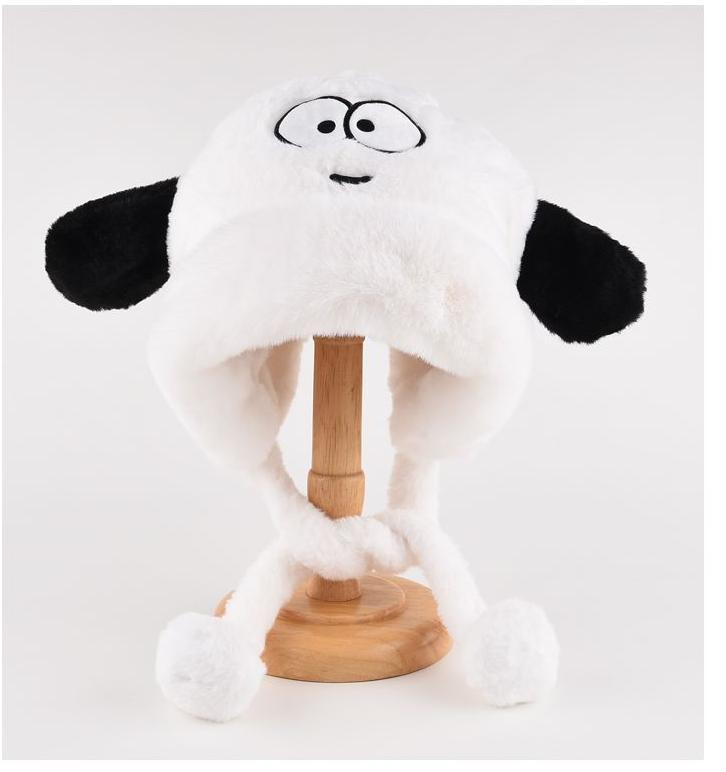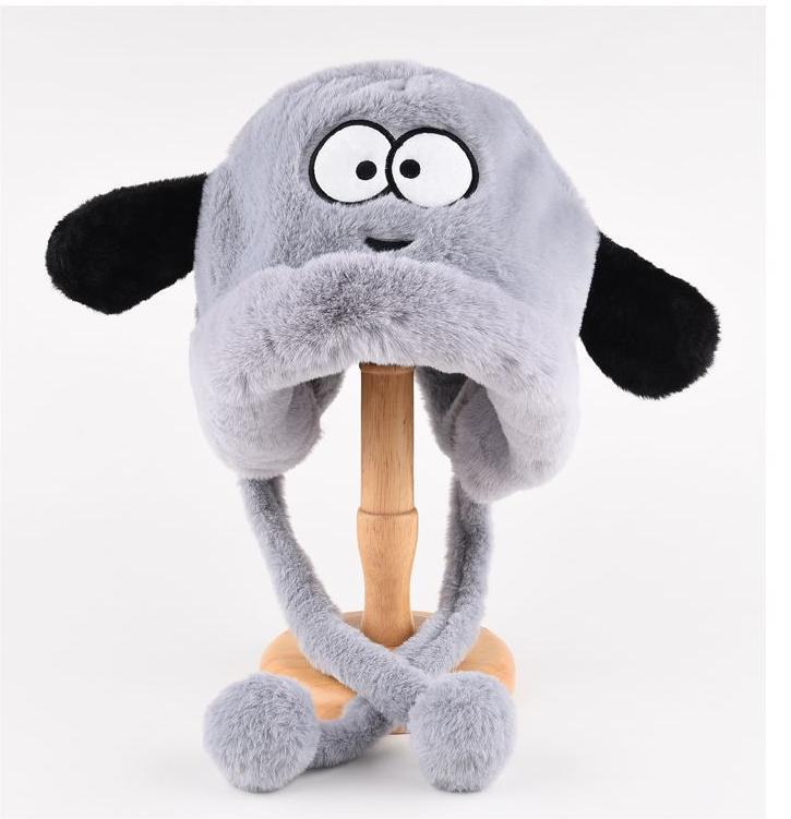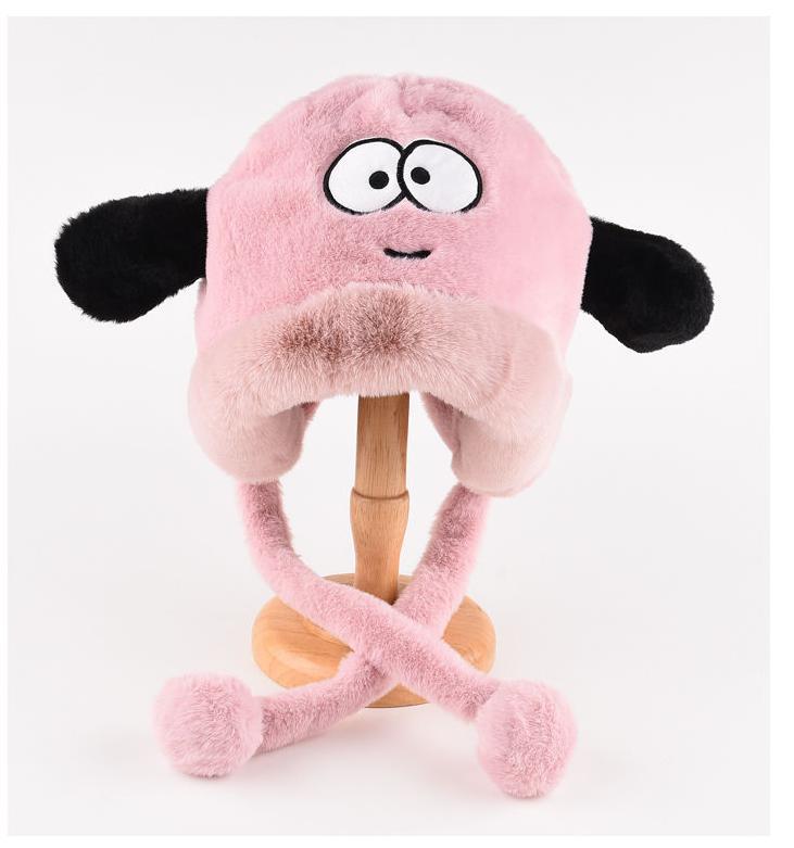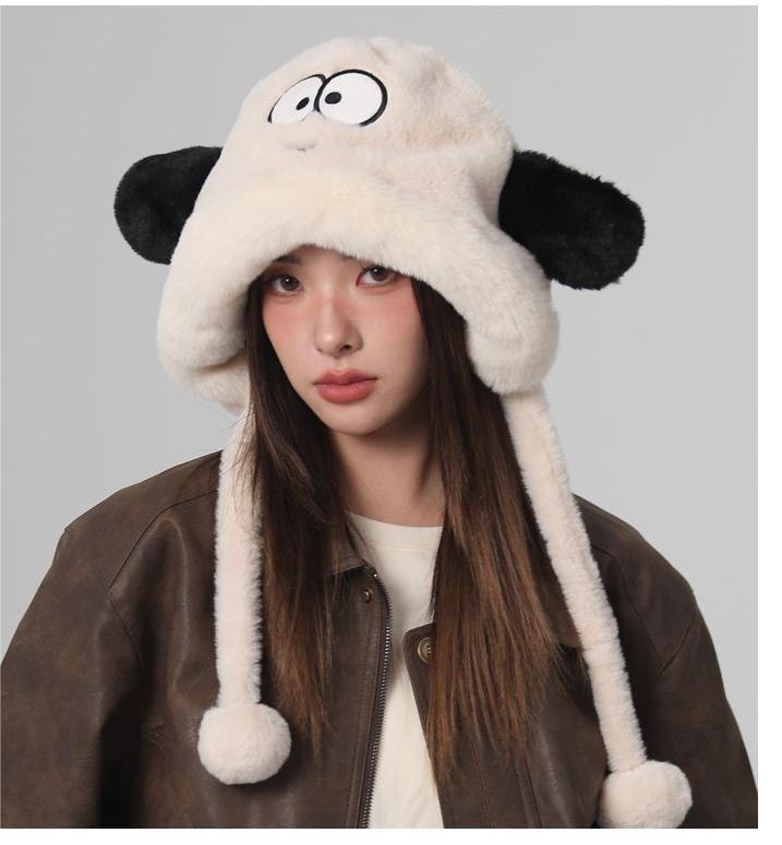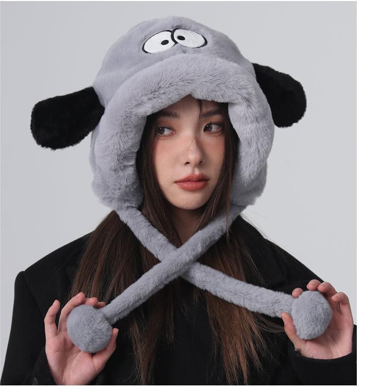Lindo gorro de felpa de cachorro para mujer invierno ciclismo cálido niña orejeras blanco peludo gorro Lei Feng celebridad de Internet