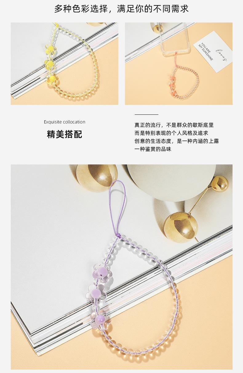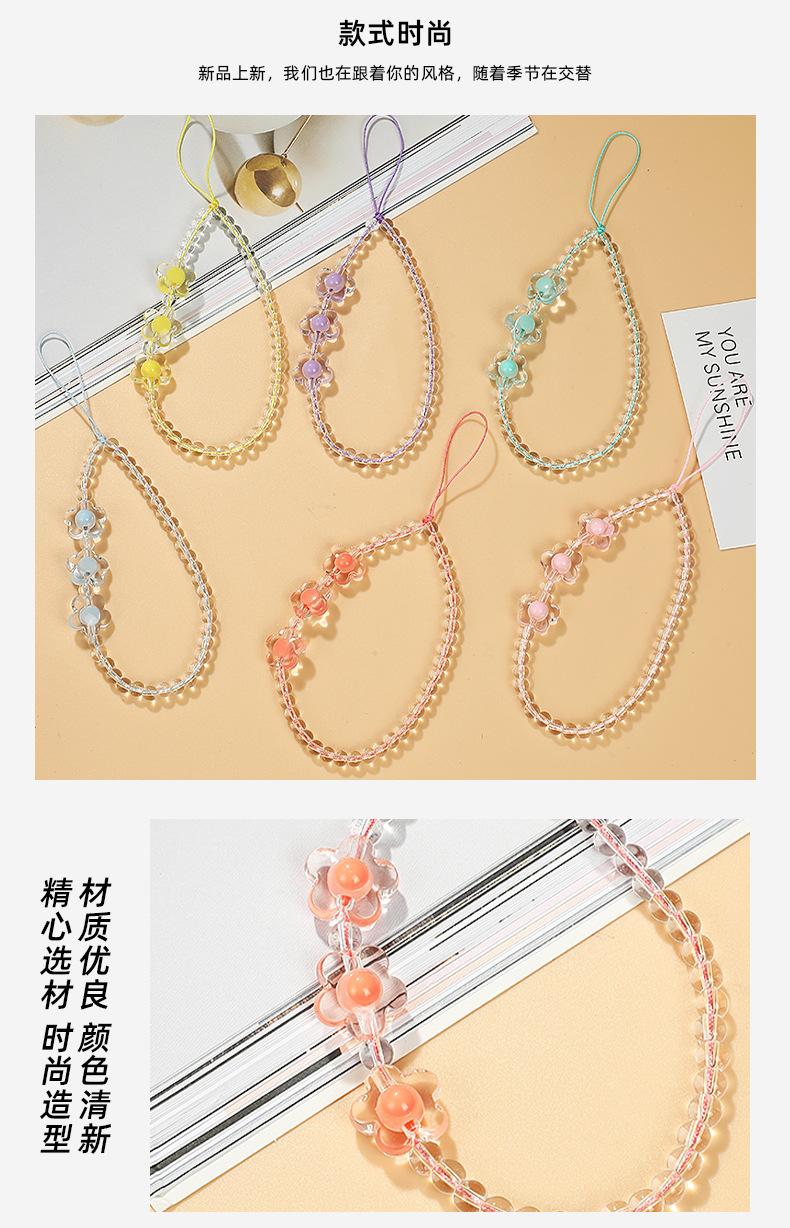 Nuevo Dibujo Animado Acrílico Flor Cuerda para Teléfono Móvil Lindo y Dulce Teléfono Móvil con Pequeñas Cuentas de Cristal Frescas Lanyard Cadena para Teléfono Móvil