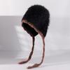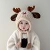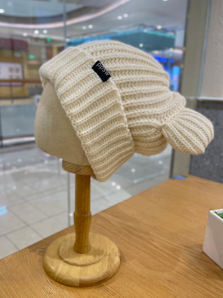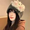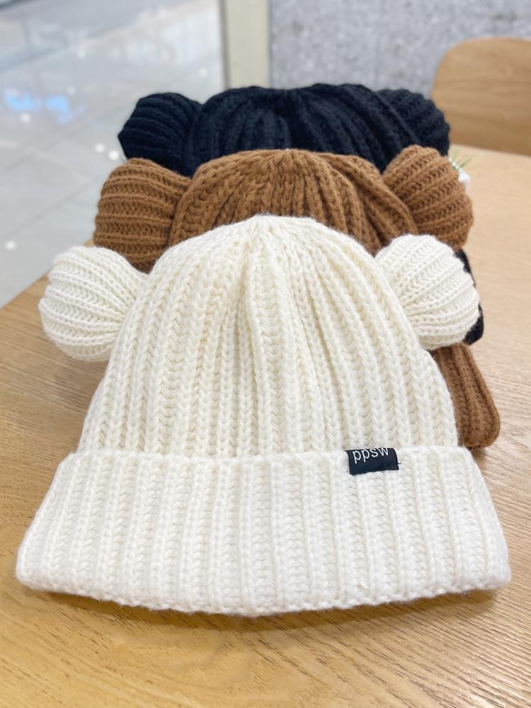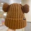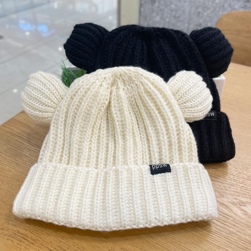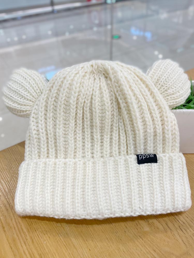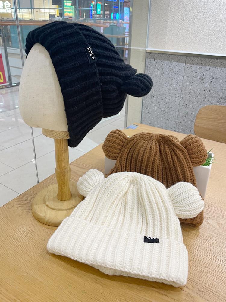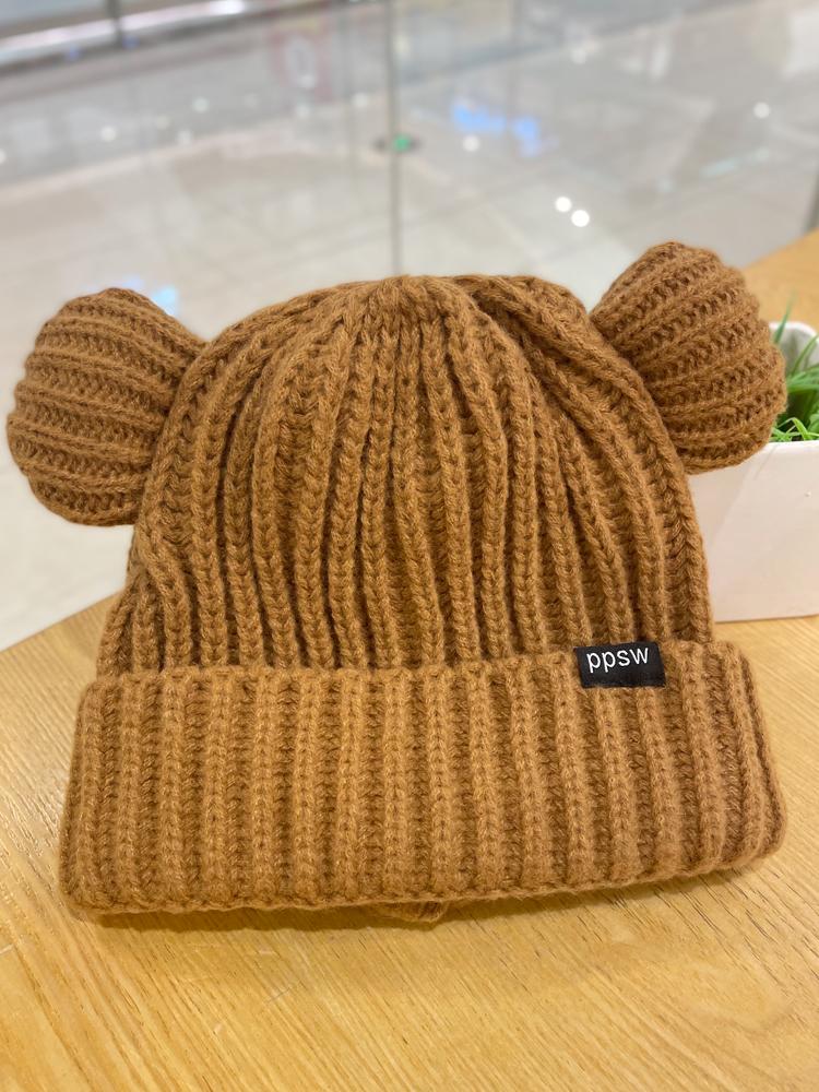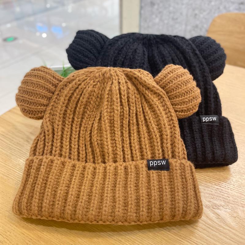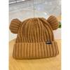 Lindo gorro de lana de punto para niños, otoño e invierno, cálido, con orejas de oso, etiqueta de tela, suelto, pequeño, a la moda.