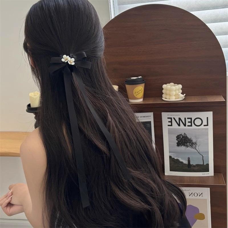 Lazo de cinta negro exquisito para el cabello, horquilla para la parte posterior con clip de resorte, temperamento avanzado, horquilla con clip para la cabeza