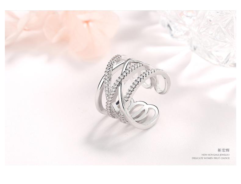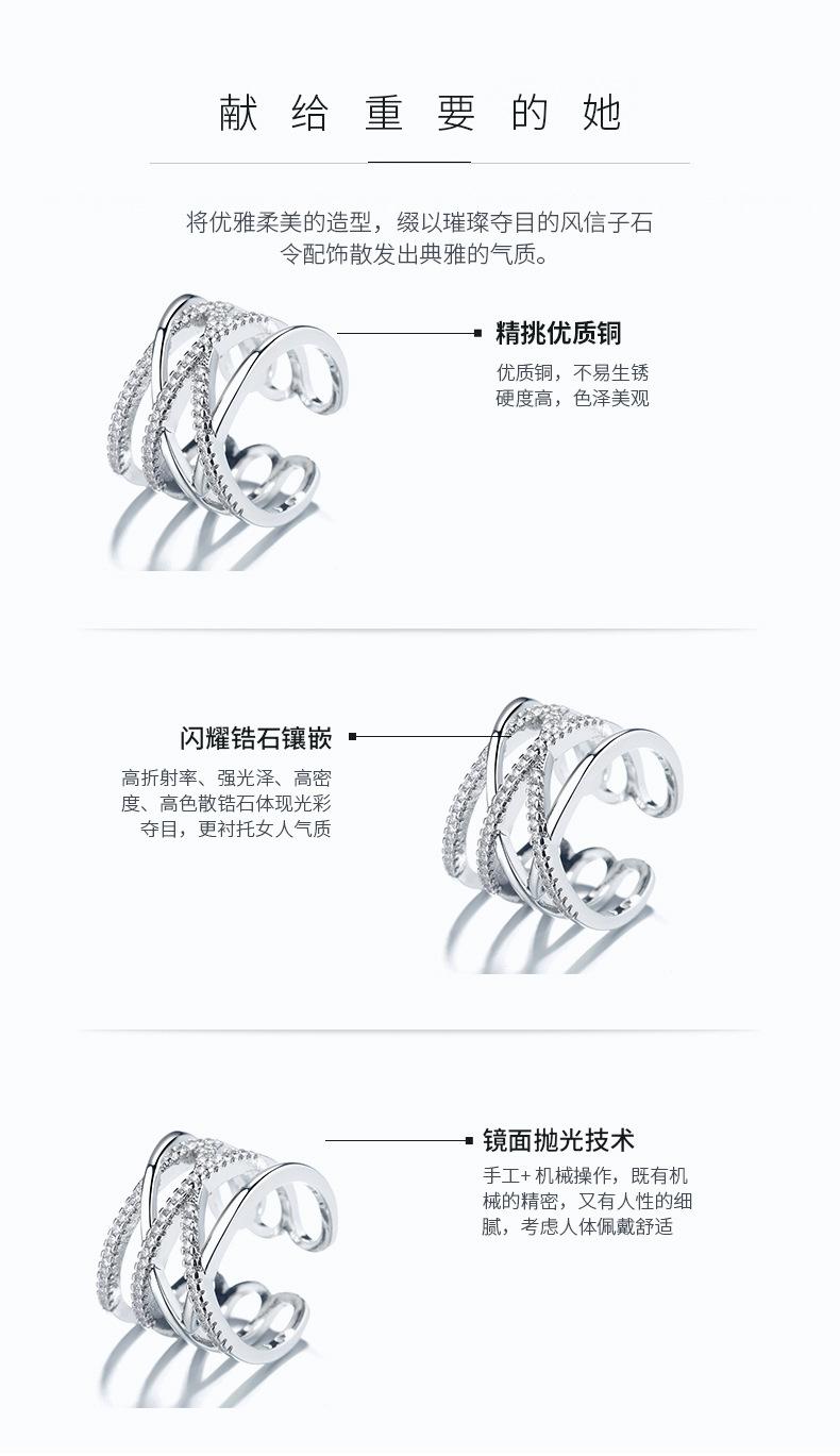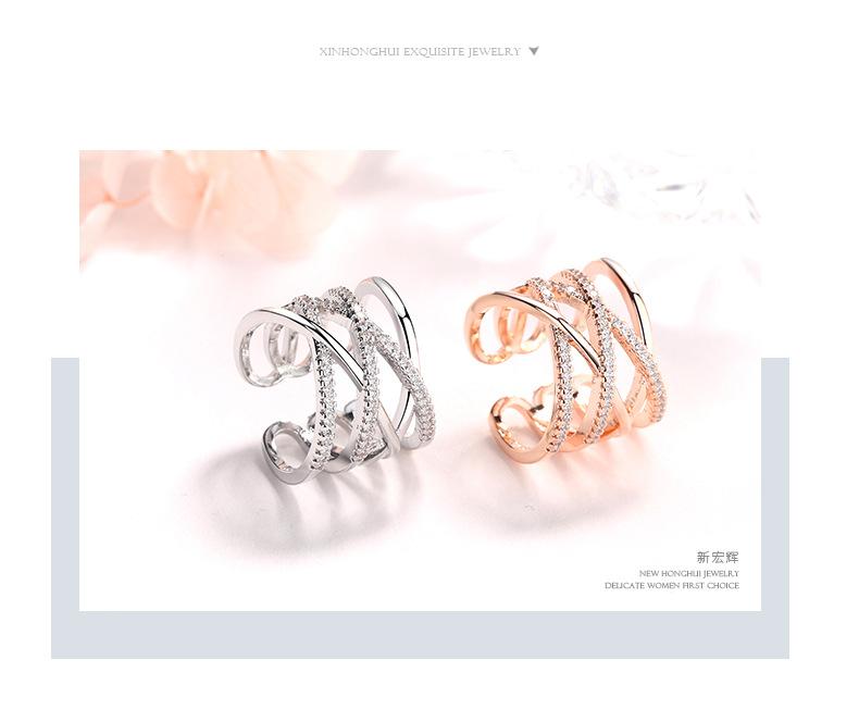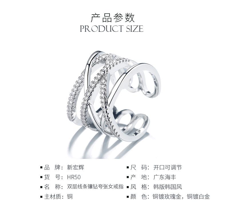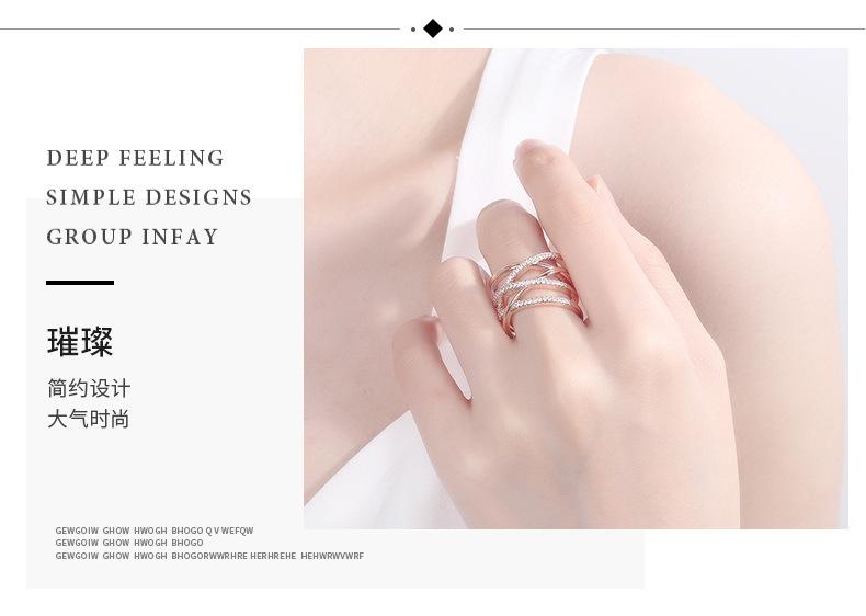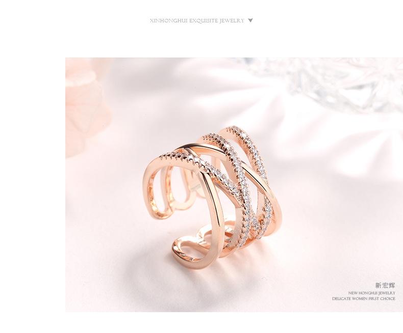 Anillo de Mujer Exagerado de Doble Línea de Diamantes Temperamento Oro Rosa Moda para Damas Venta al por Mayor Circonita