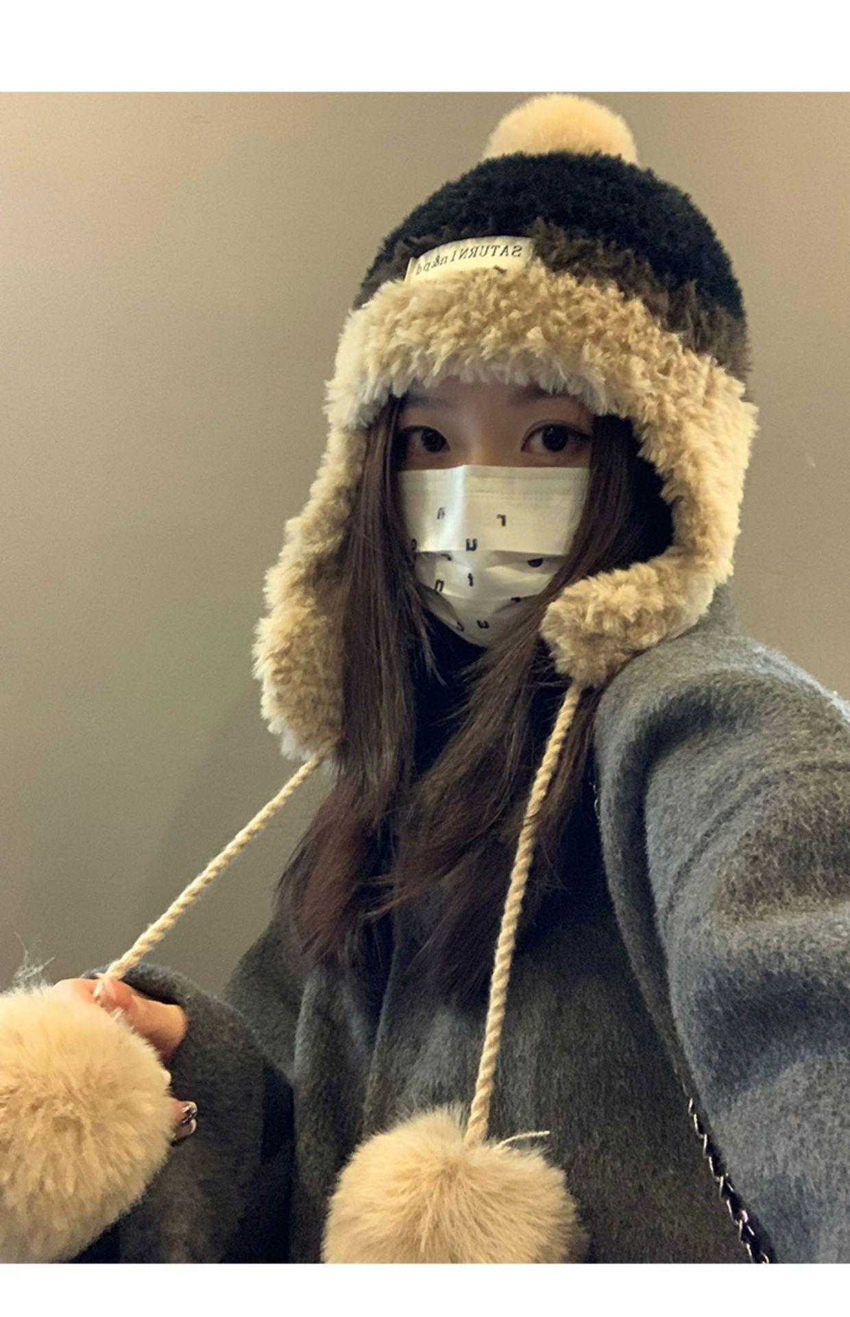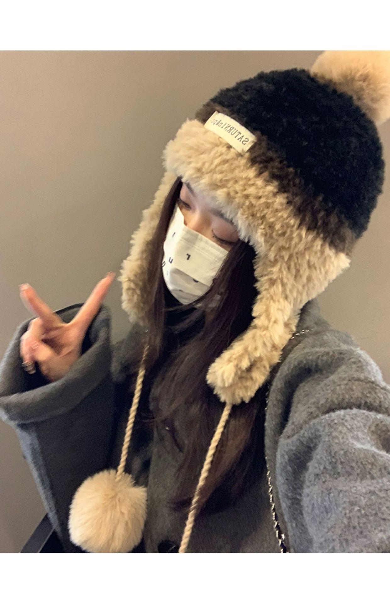 Sombrero de otoño e invierno 2023 nuevo engrosado a juego de colores felpa cálido para exteriores para montar protección para las orejas a prueba de viento gorro Lei Feng