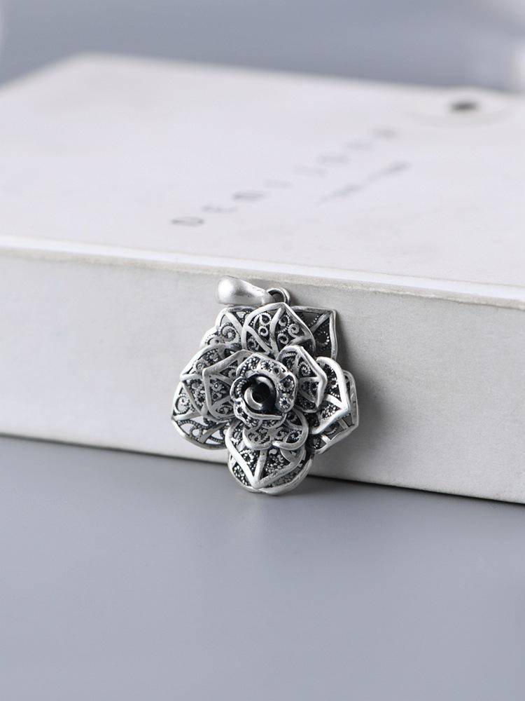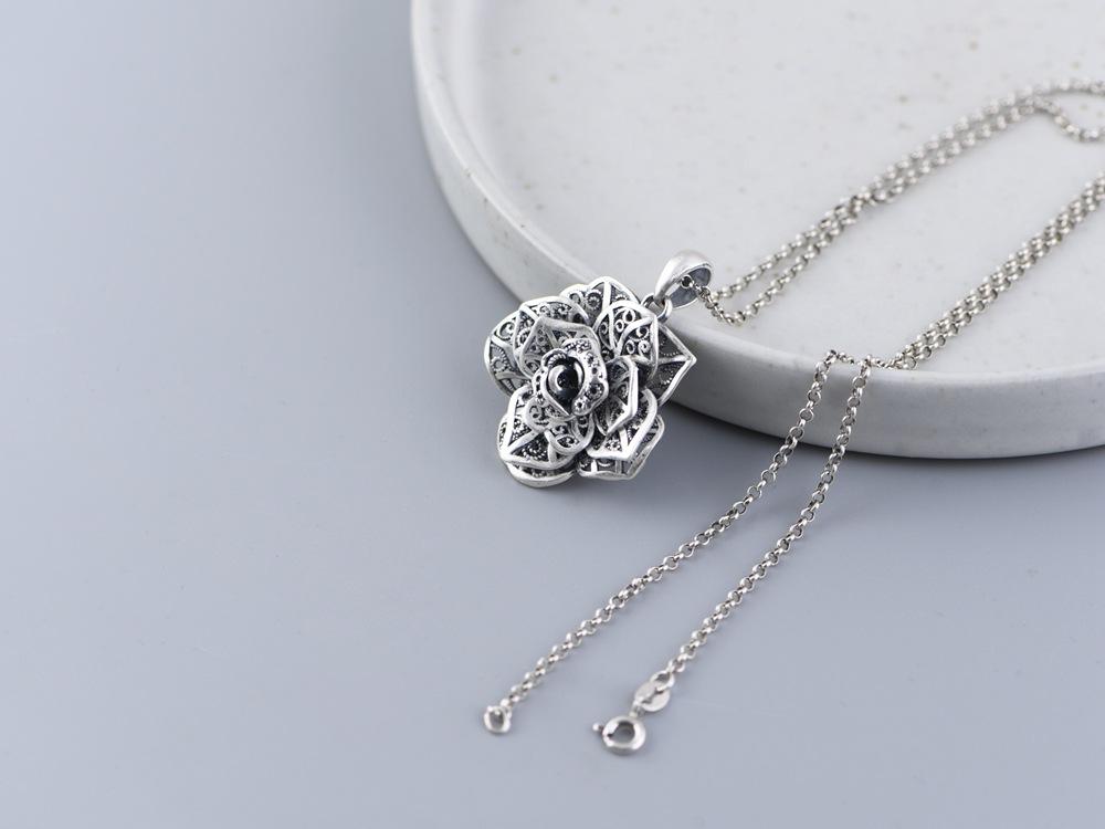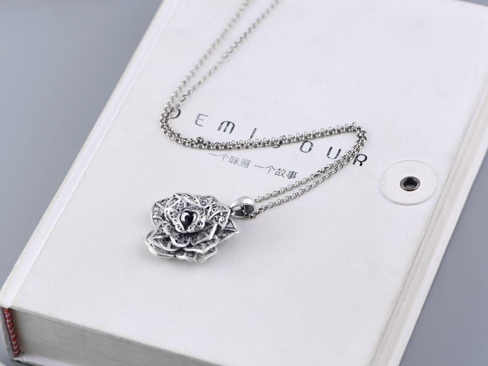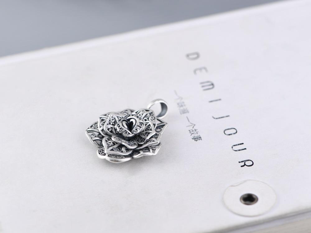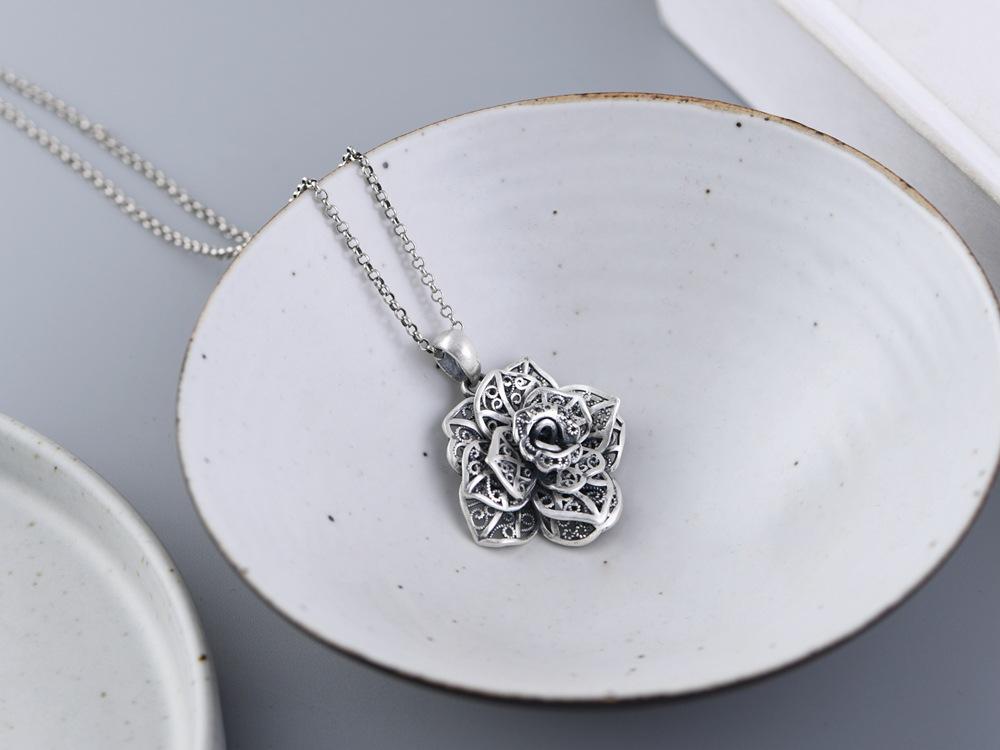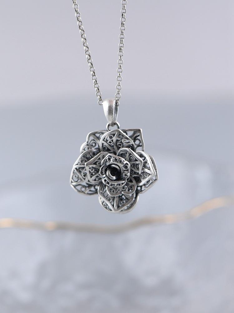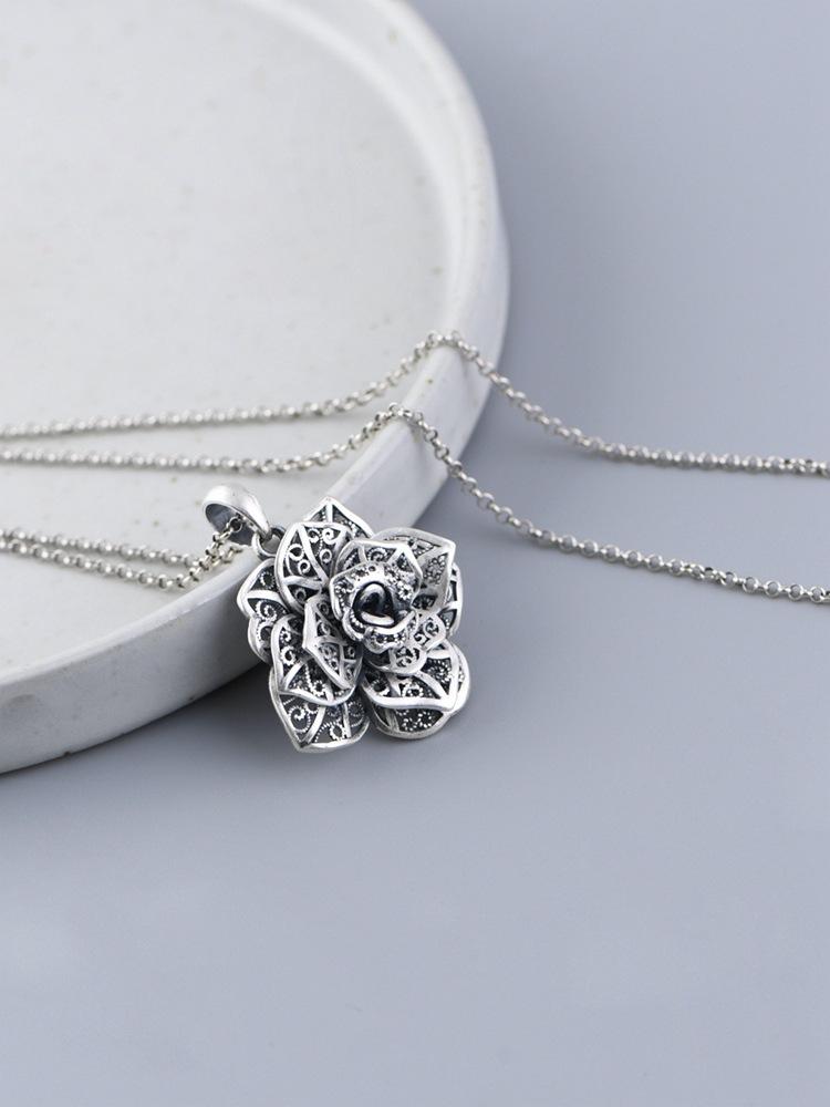 Colgante de suéter con forma de rosa hueca tridimensional, estilo vintage artesanal, de plata y con diseño de ciervo dorado, joyería para mujer