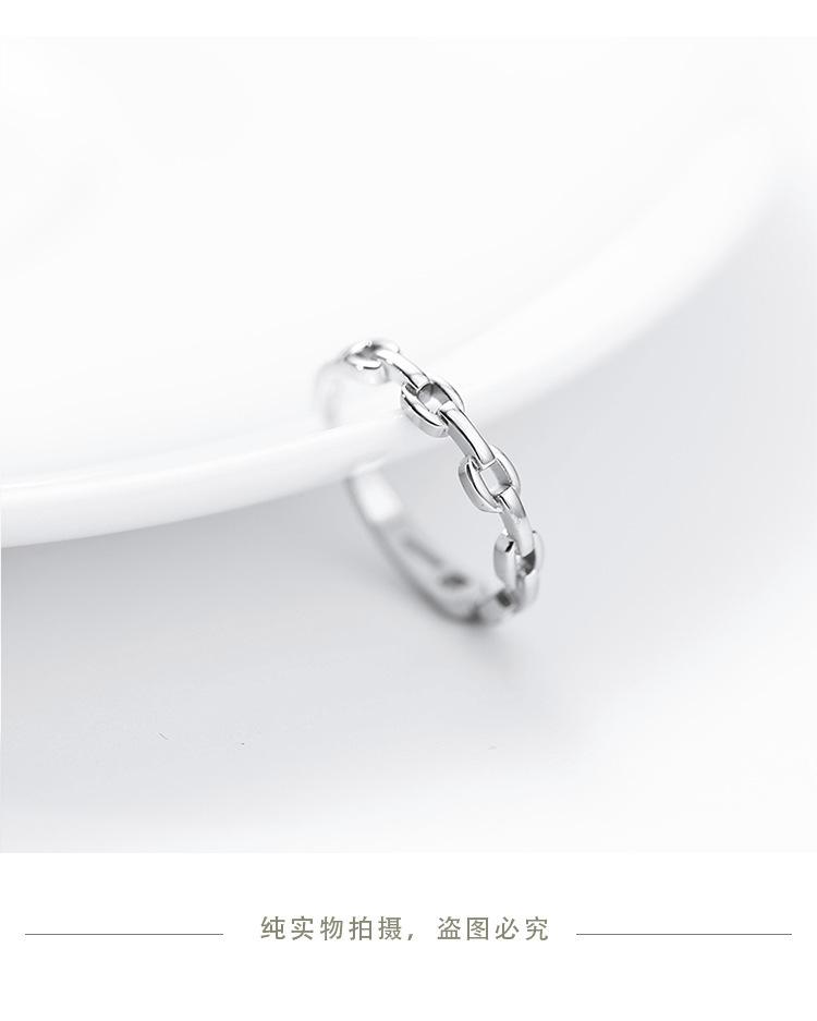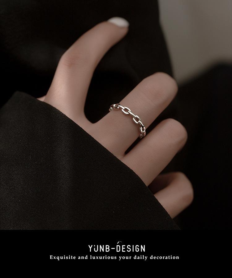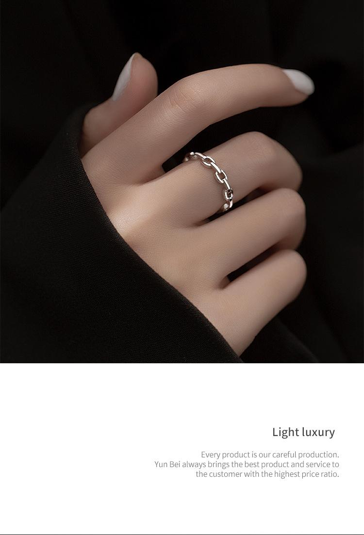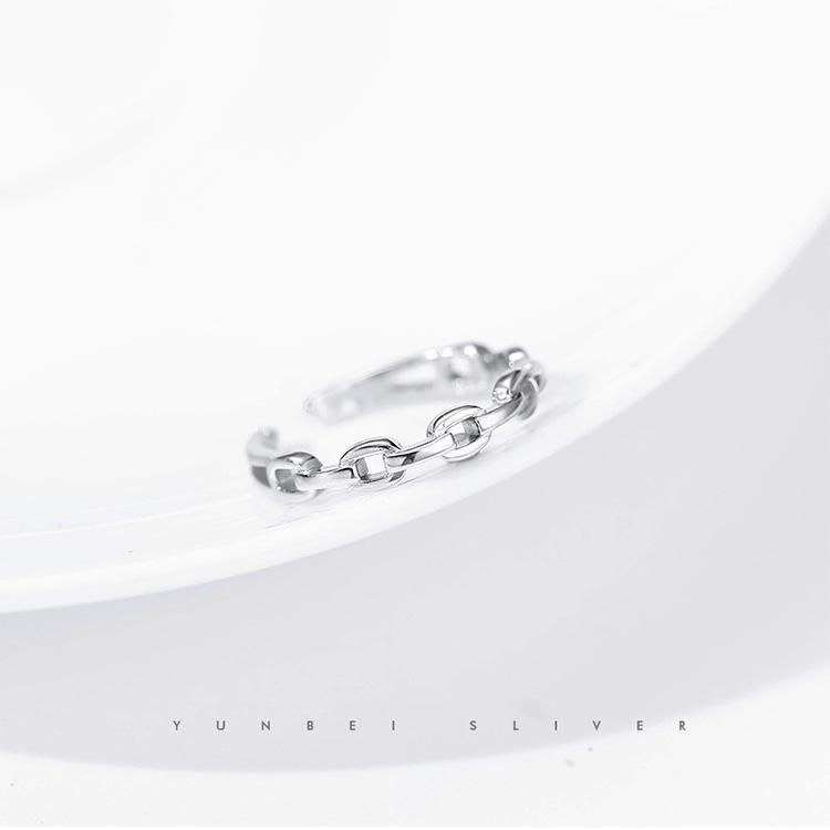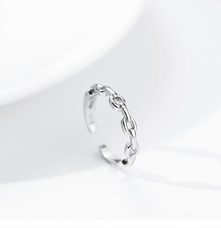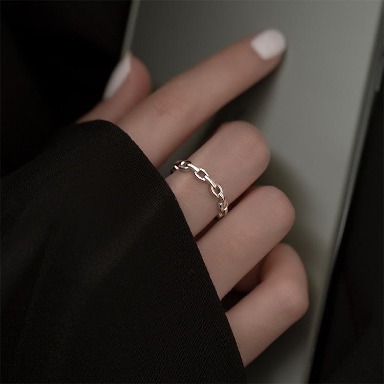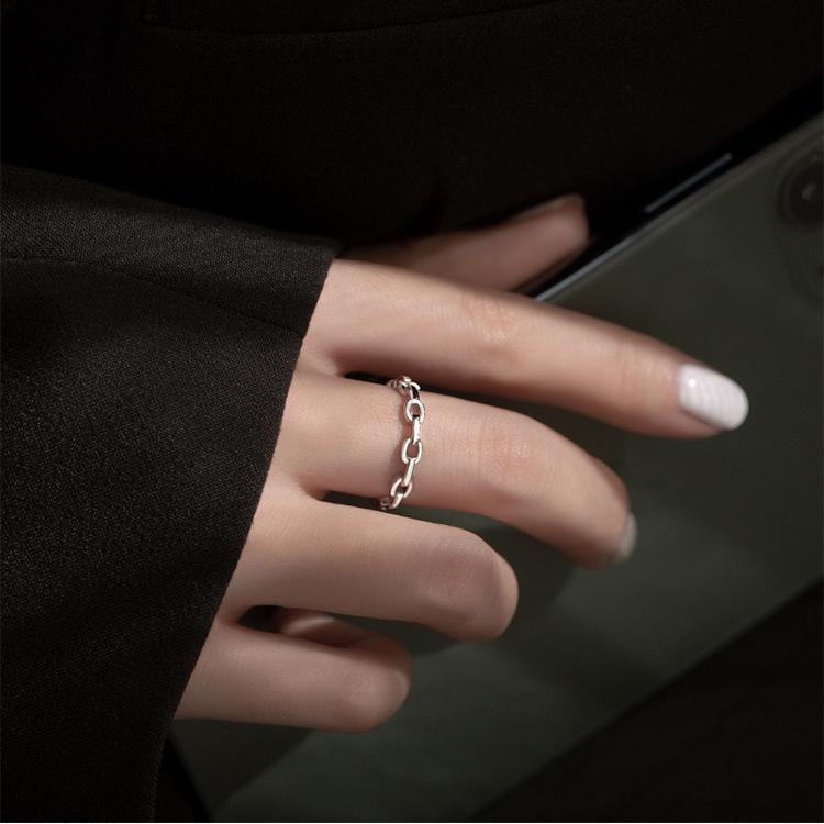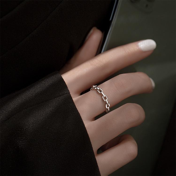 Anillo de Cadena Simple para Mujer Estilo Coreano Plata S925 Moda Personalizado Hueco Abierto Apilable Elegante Anillo de Dedo Moda