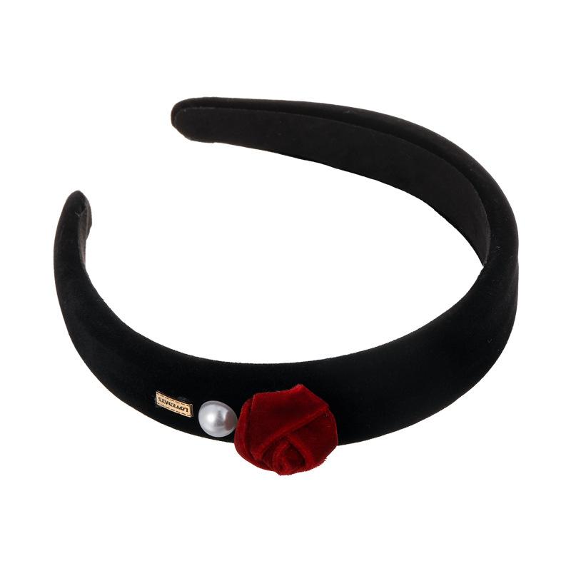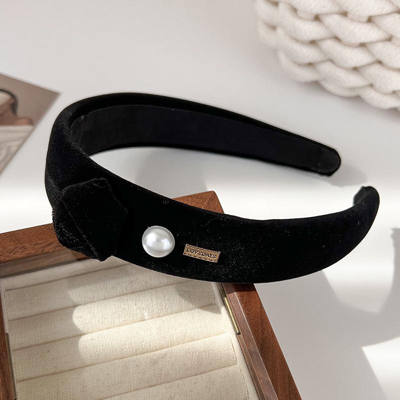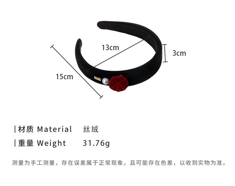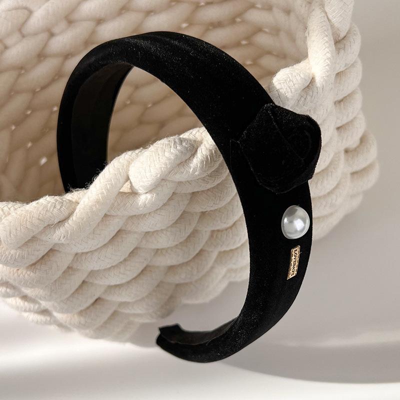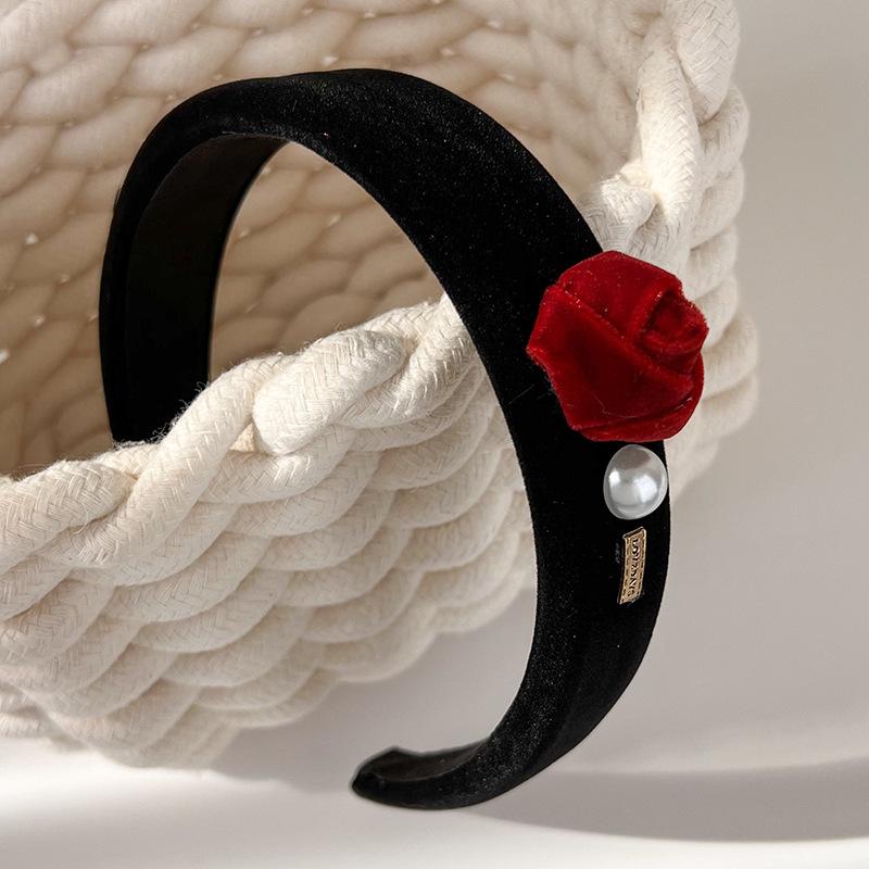 Diadema de terciopelo negro con perlas rosas para otoño e invierno, tocado dulce que combina con todo, banda para el cabello de alta presión con calavera, accesorios para el cabello al por mayor