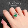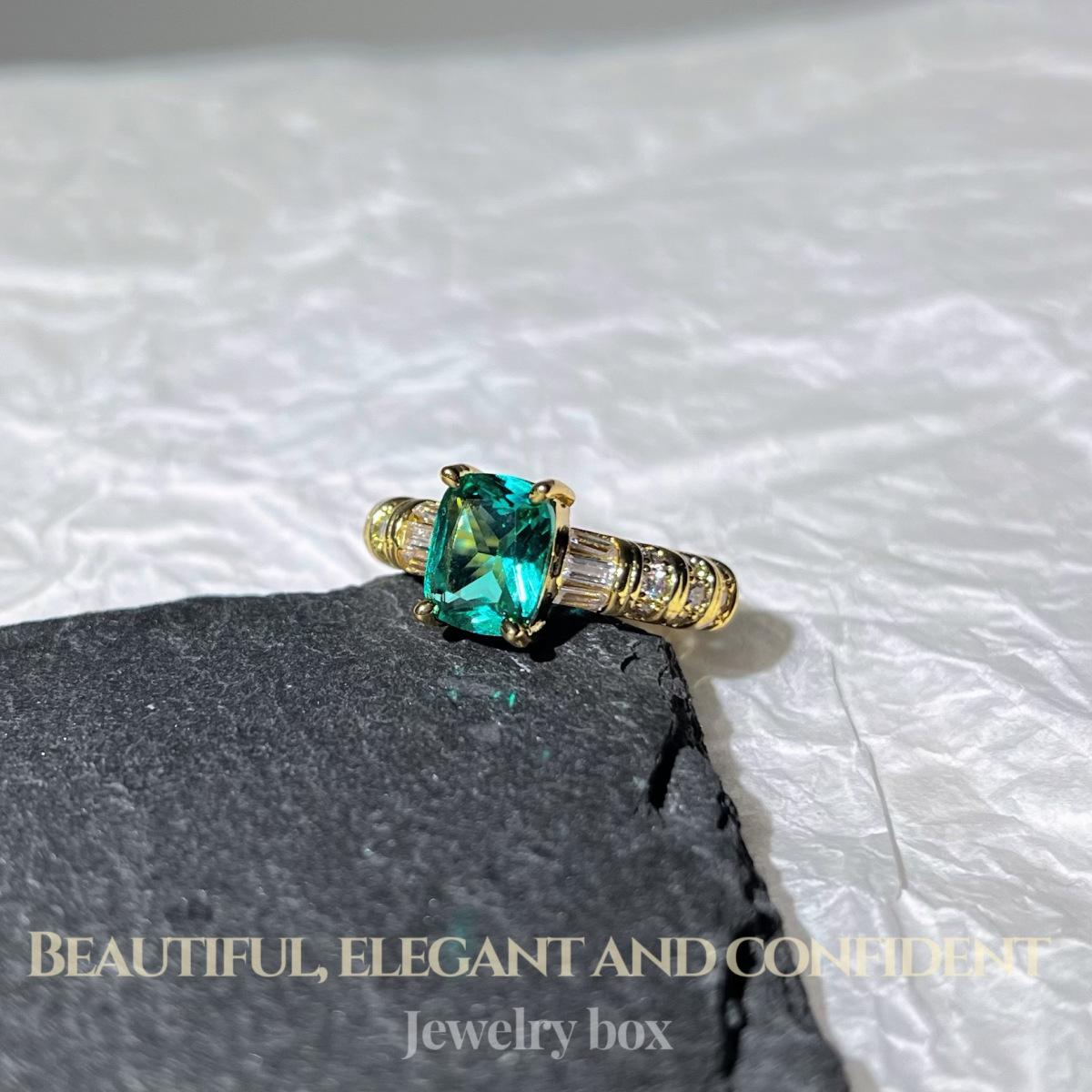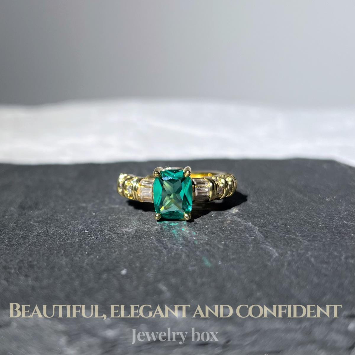 Vintage Medio Antiguo Esmeralda Para Lujo Ligero Cuadrado Diamante Anillo de Apertura Ajustable Francés Vintage