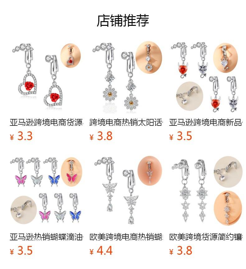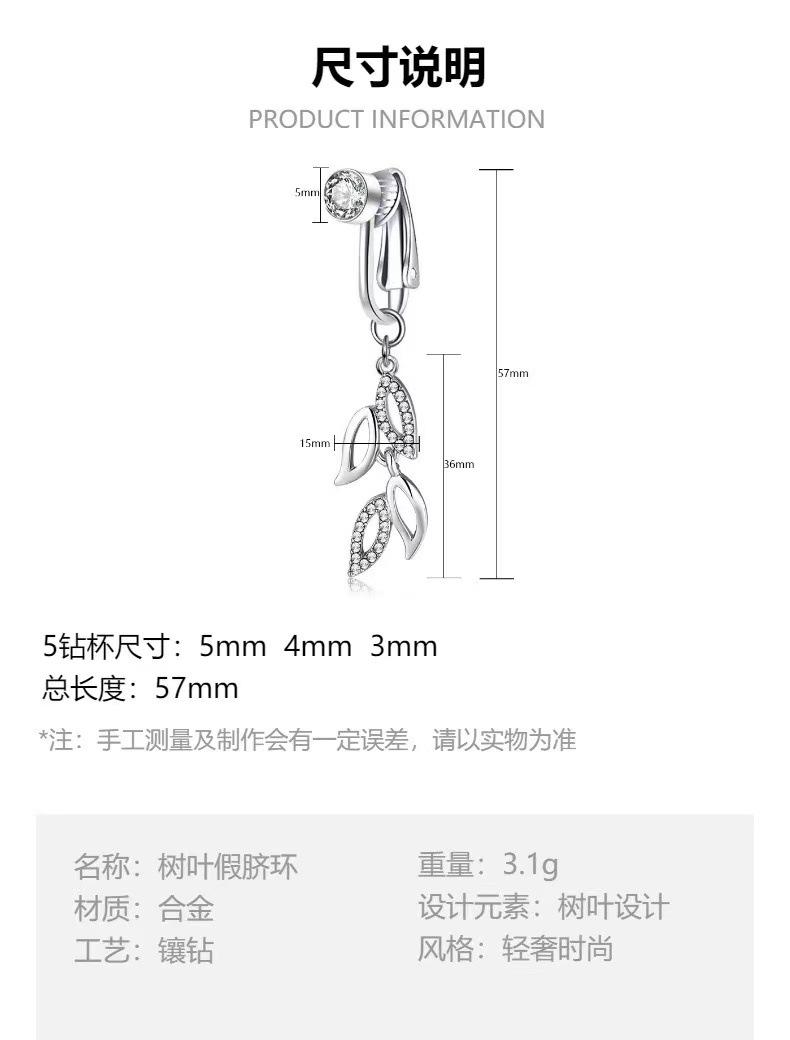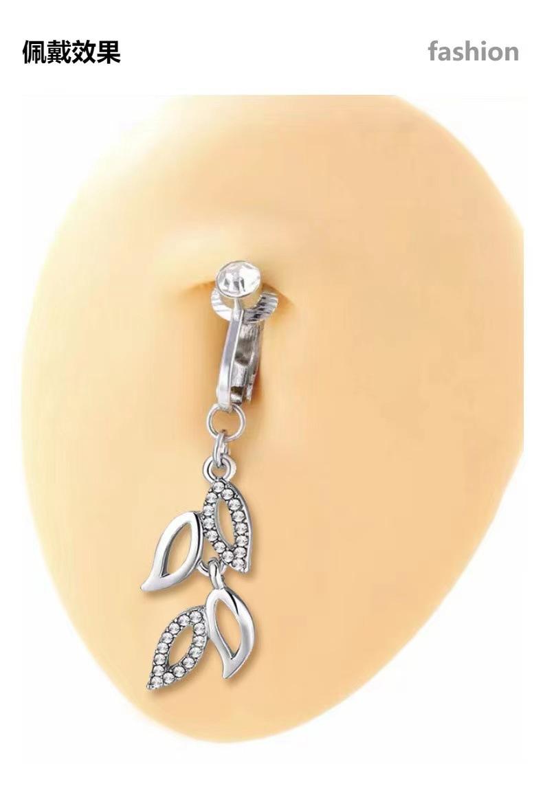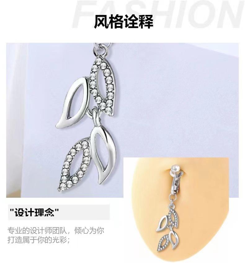Amazon cross-border deja anillo falso de ombligo de diamante anillo de ombligo no perforado hoja moda joyería de perforación europea y americana
