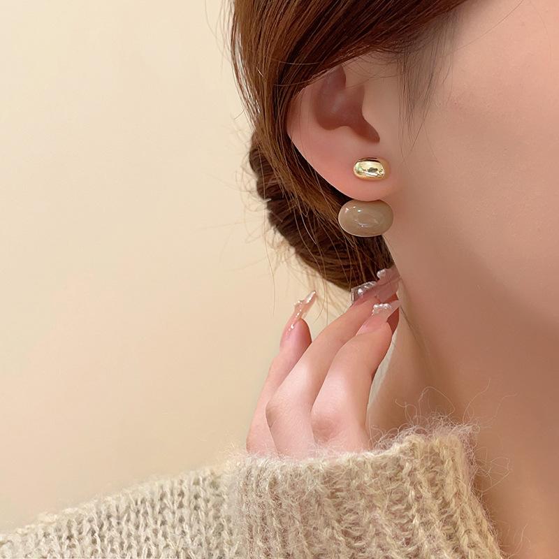 Aretes franceses retro de dos piezas con forma de frijol, aretes pequeños y sencillos, aretes de moda de alta gama para mujer, populares nuevos 2024