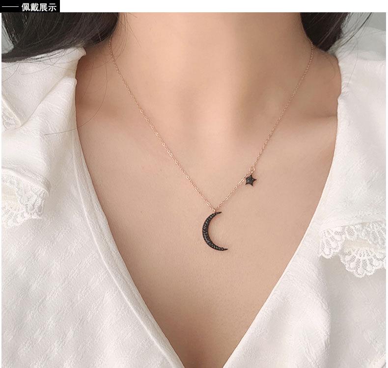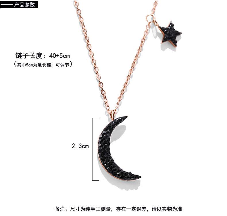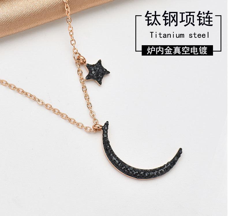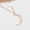 Collar de estilo coreano con forma de luna y estrella de acero de titanio y oro rosa para mujer, cadena de clavícula de oro rosa de 18 quilates, joyería para celebrantes de Internet.