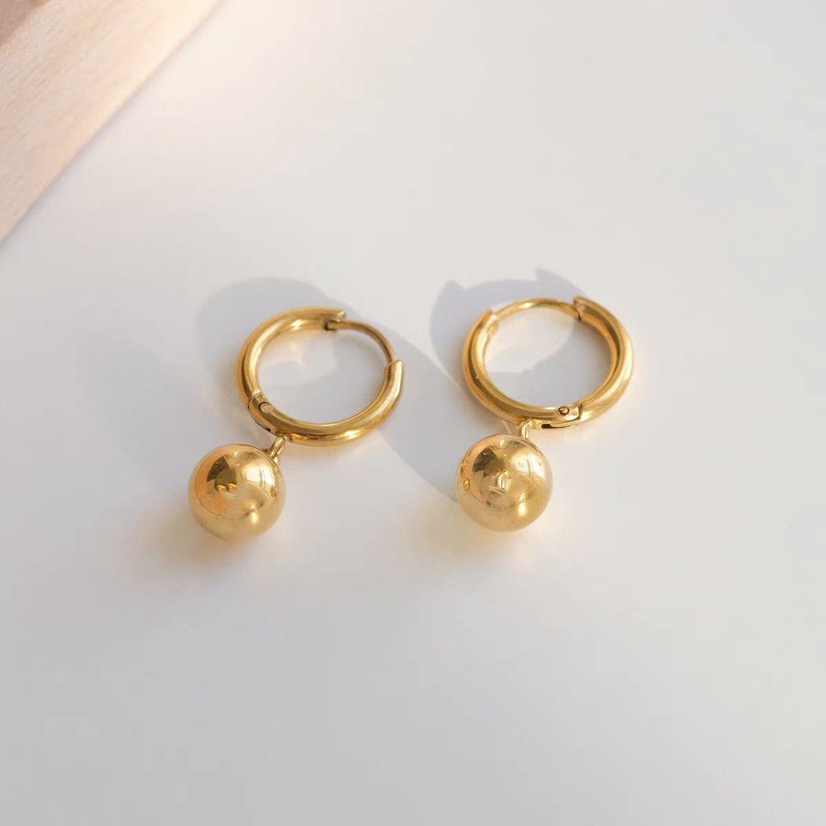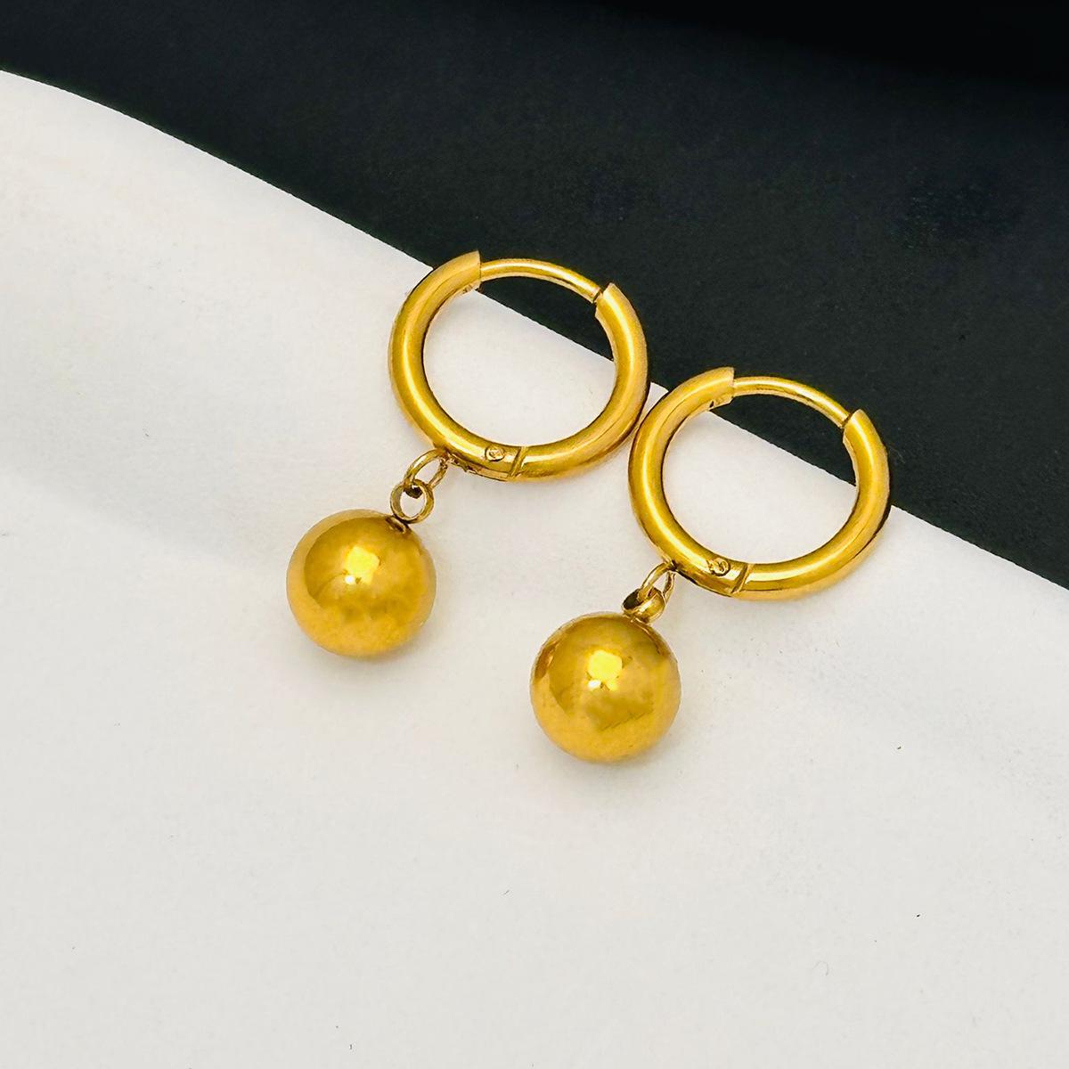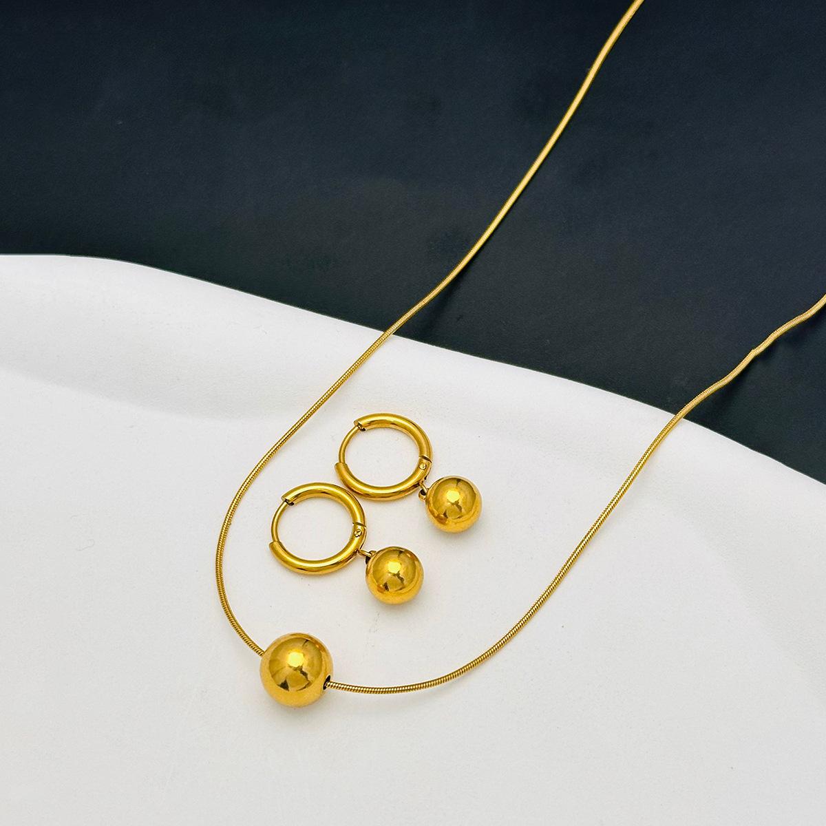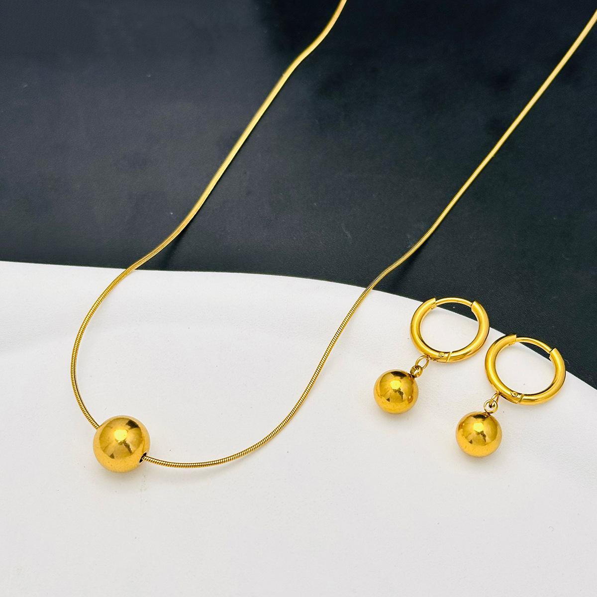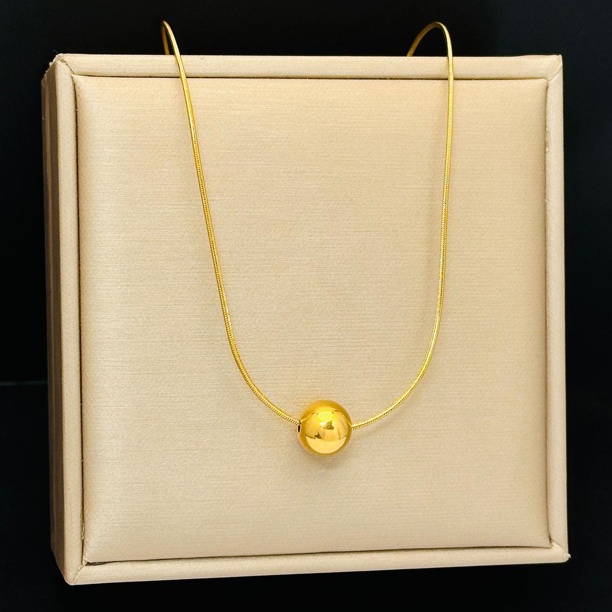 Collar sencillo de acero de titanio con cuentas redondas para mujer, resistente a la decoloración, de lujo, ligero y combinable, dorado, a la moda, con cadena cruzada.