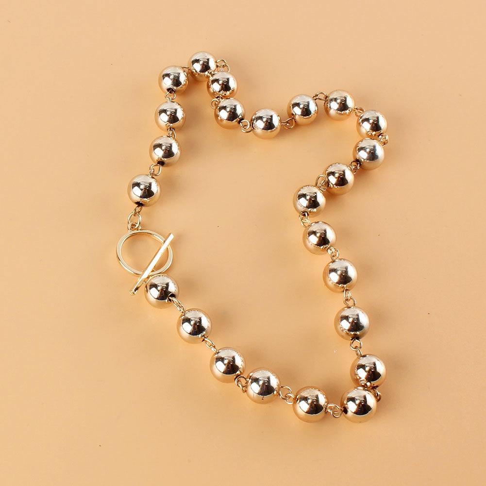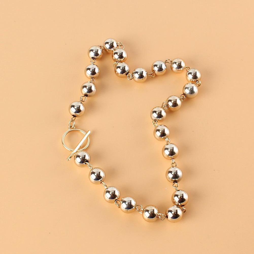 Collar corto de cadena de bolas de aleación retro europea y americana, estilo frío, dorado, con borde cruzado 18270