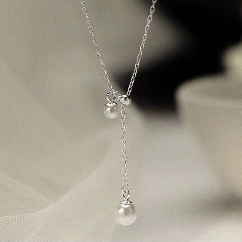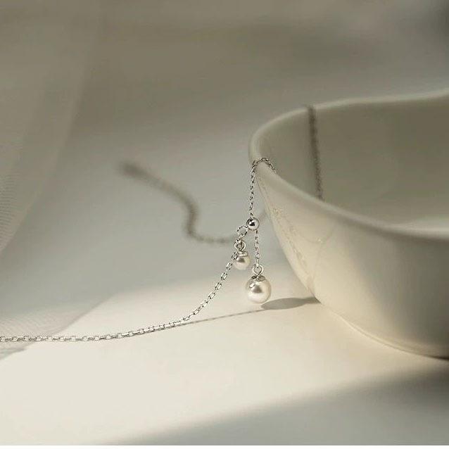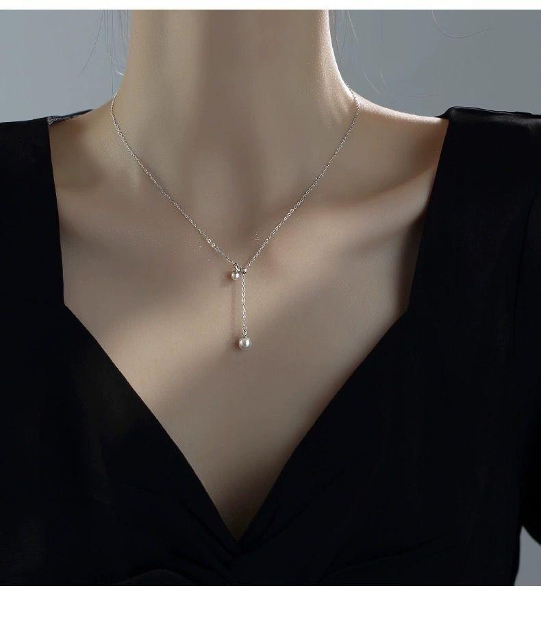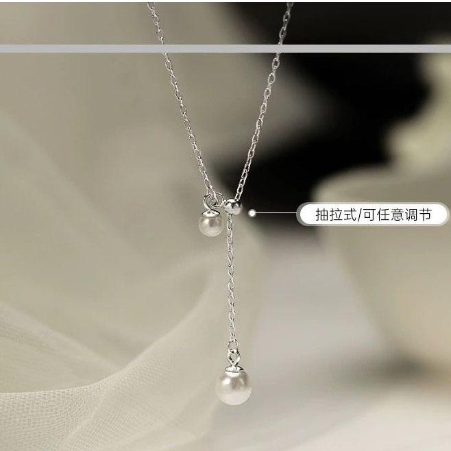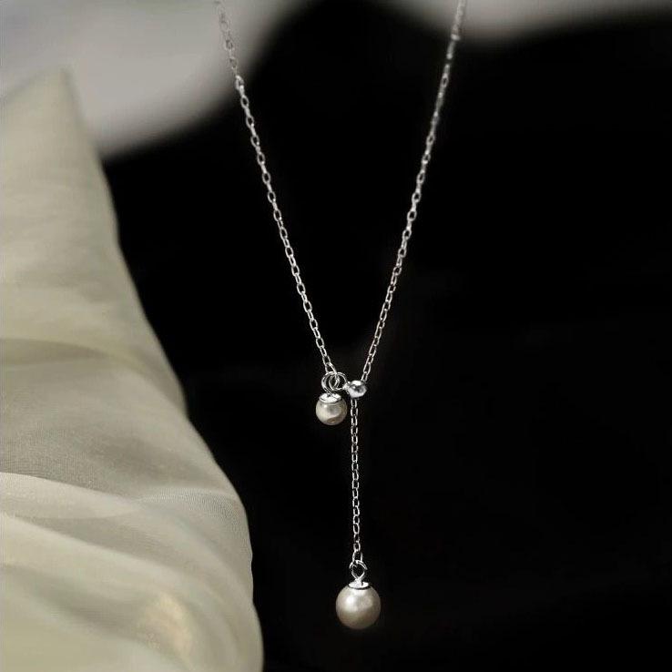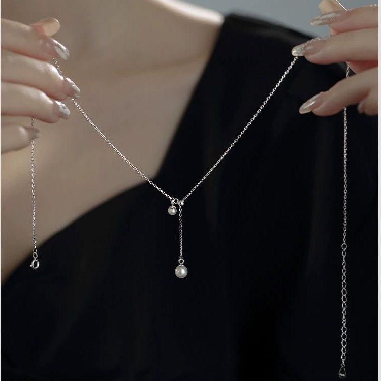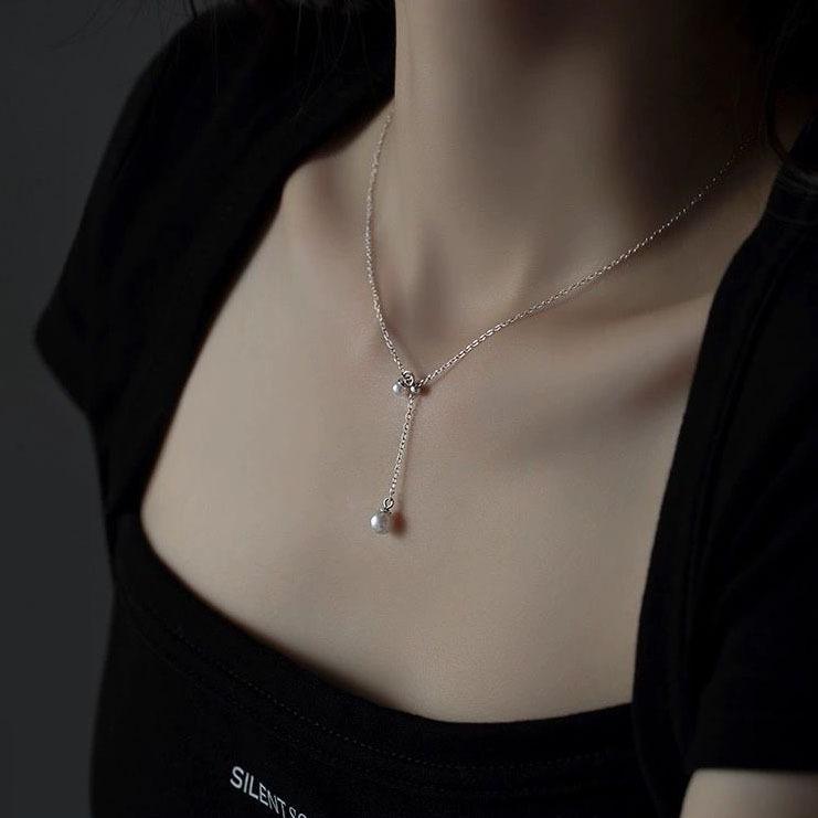 Collar de doble perla con borlas para mujer, estilo francés, ligero, de lujo, de alta calidad, con cadena de clavícula con borlas extraíbles, estilo frío, sencillo para estudiantes.