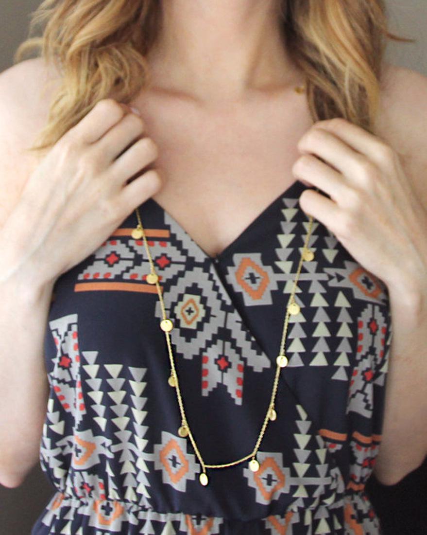 Collar largo de múltiples discos con lentejuelas geométricas para mujer, estilo europeo y americano, con personalidad sencilla, cadena de suéter