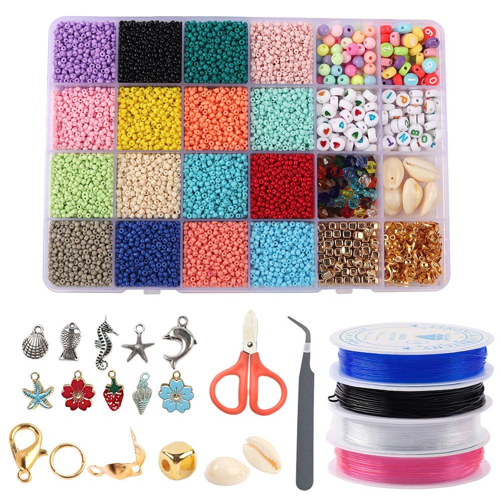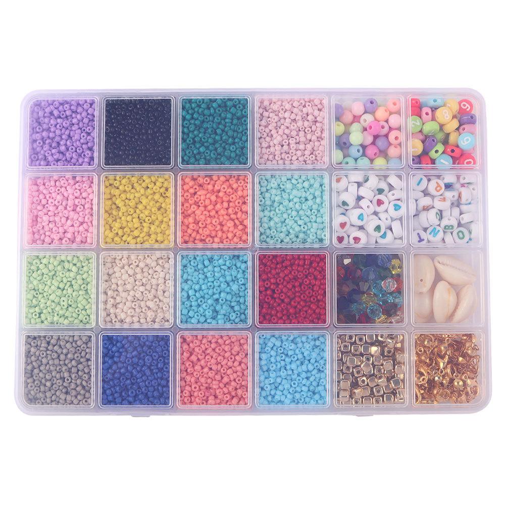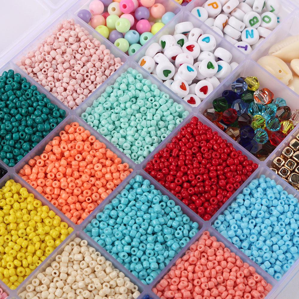 Empaque: Combinación 1, combinación de cuentas de semilla, según descripción detallada,Tamaño de la caja:19*13,2*1,8 cm,Un juego pesa aproximadamente 405 g.