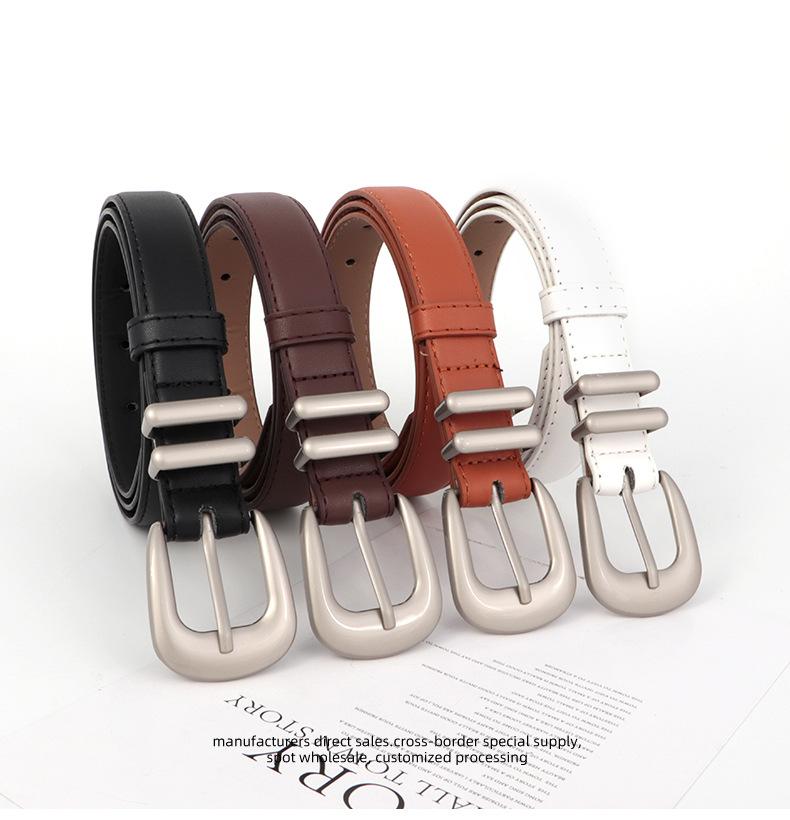 Cinturón nuevo para mujer, versátil, de moda, de PU, blanco, con hebilla de alfiler, sencillo, decorativo, para traje de jeans, venta al por mayor