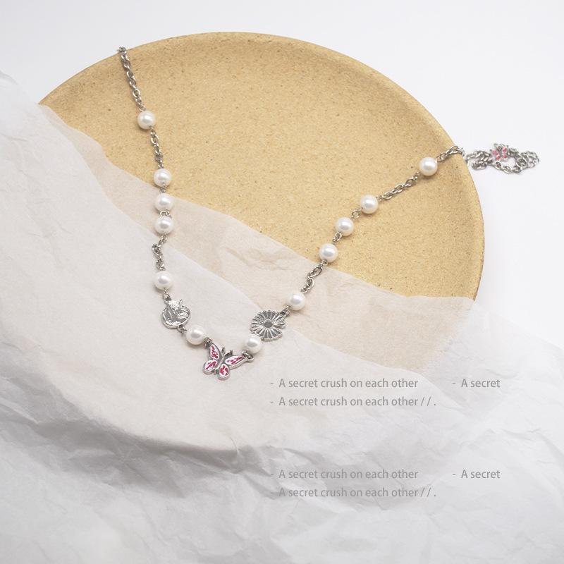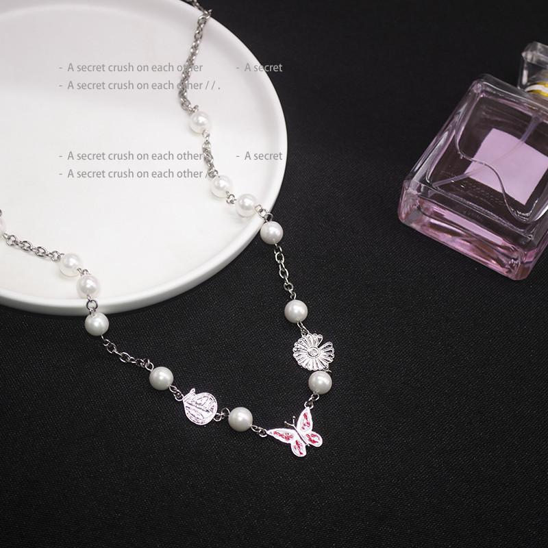 Qing Lian estrella con pequeña mariposa margarita collar de acero de titanio con perla para hombres y mujeres cadena de clavícula de la marca Street Tide joyería alrededor