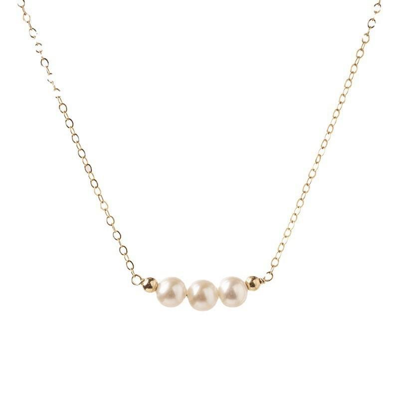Sonrisa Simple Perla Natural de Agua Dulce Oro Paquete 14K Collar de Perlas Vintage Francés Cadena Clavícula Moda Celebridad de Internet ins