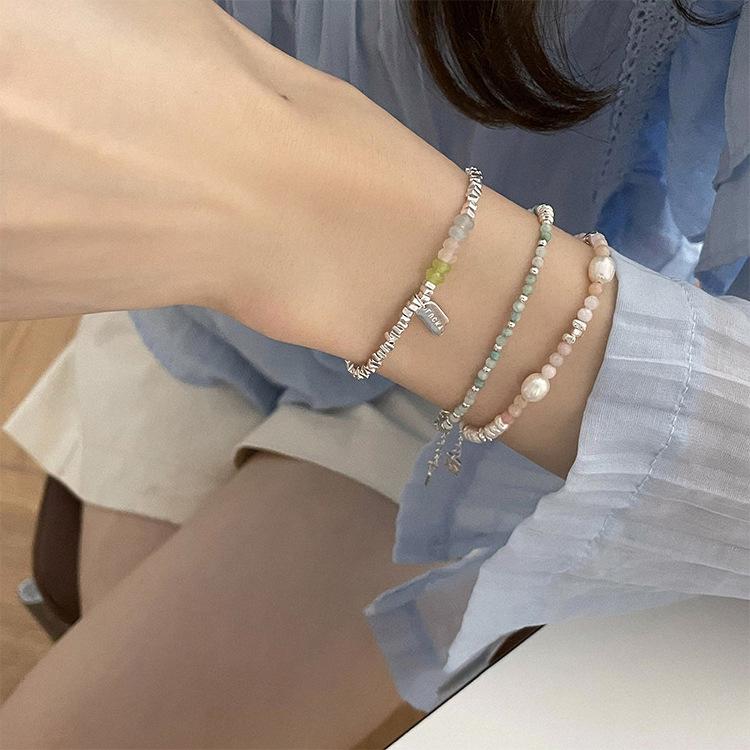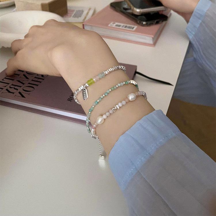 Pulsera de Perlas de Cristal Plateada de Diseño Nicho para Mujer, Retro, Personalizada, Simple, Versátil, Elegante, de Moda