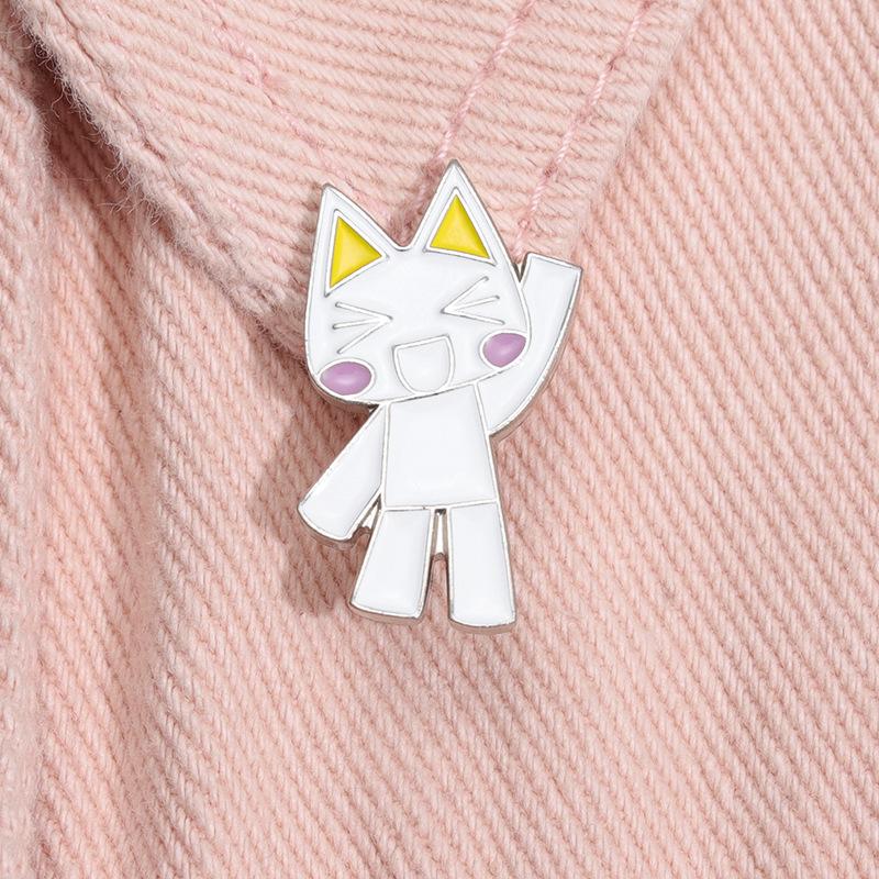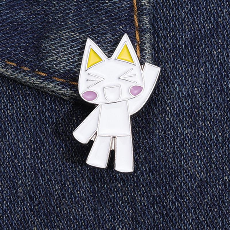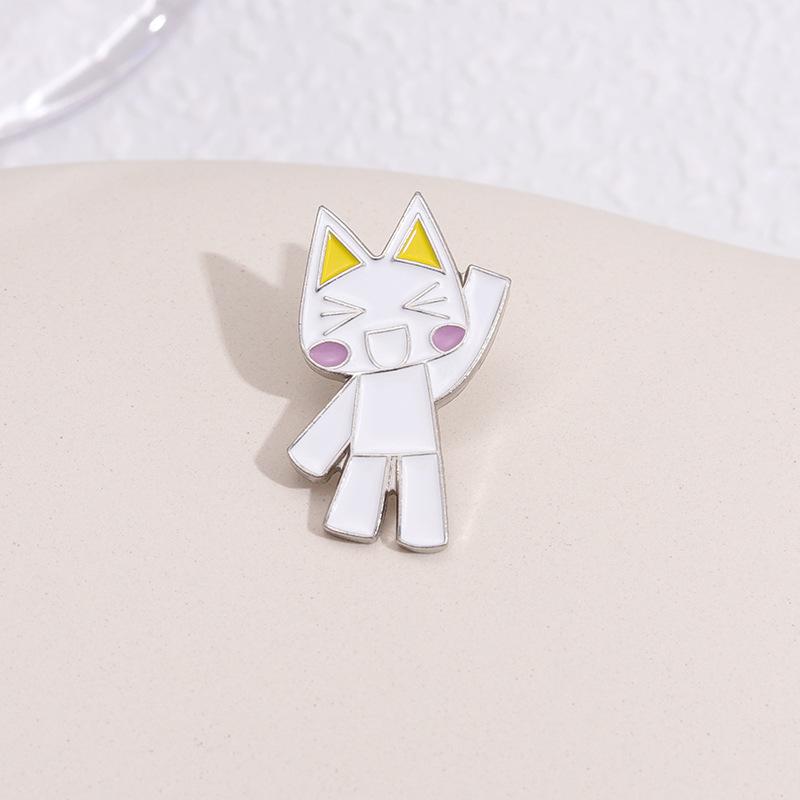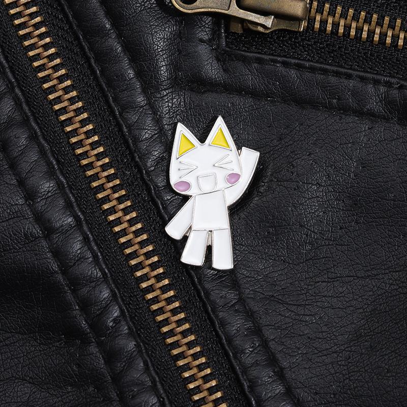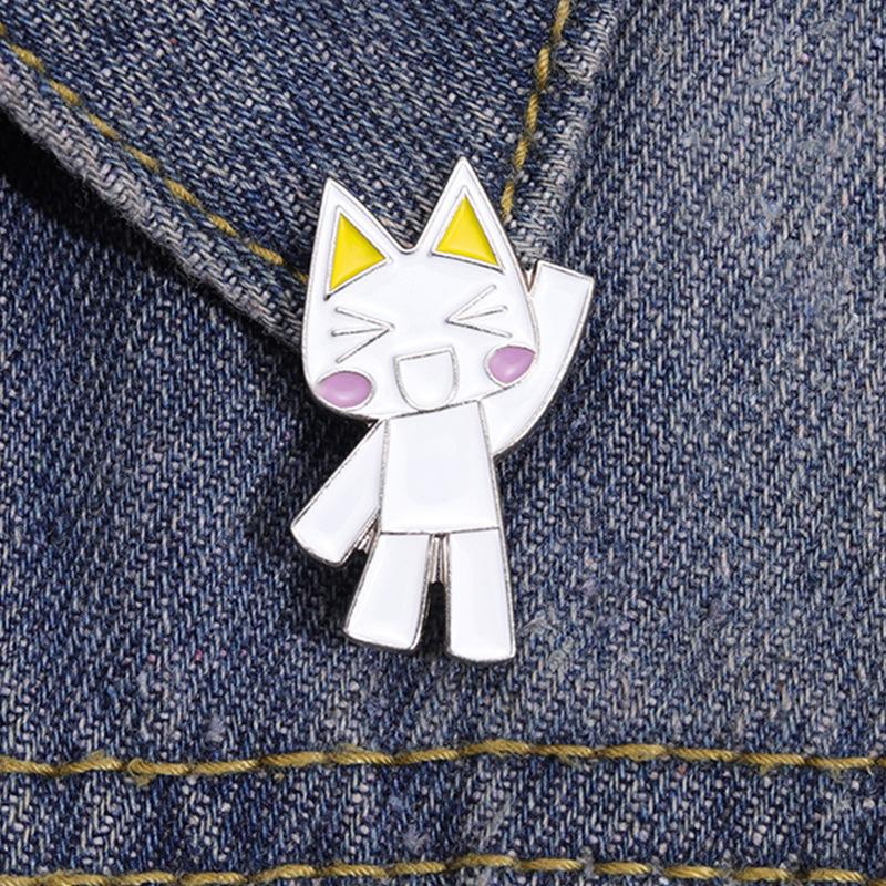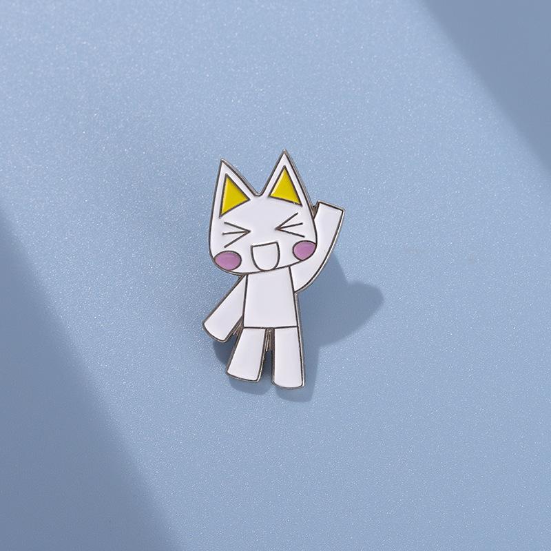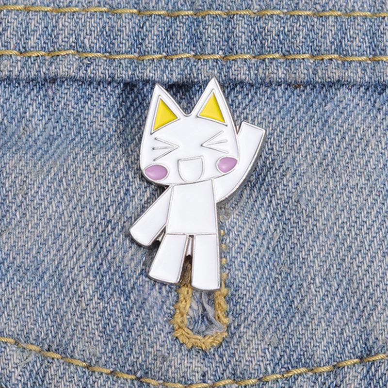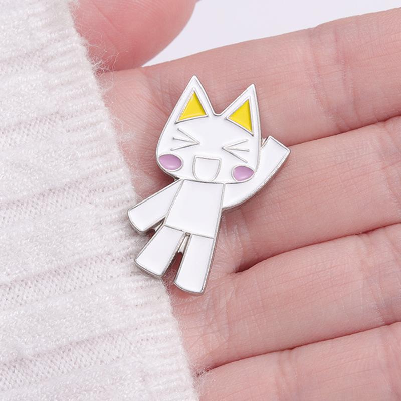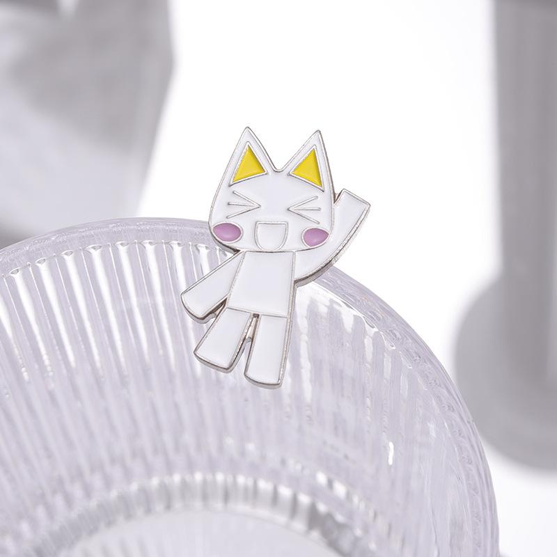Broche de aleación con forma de gato de dibujos animados, bonito y bonito gatito blanco, insignia de metal al por mayor
