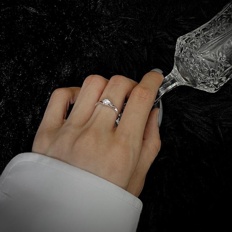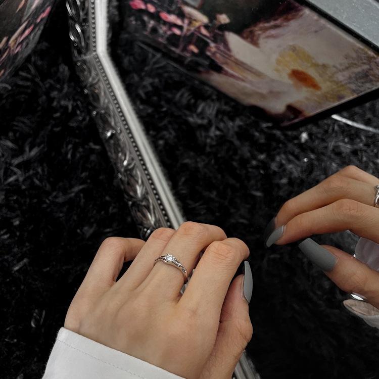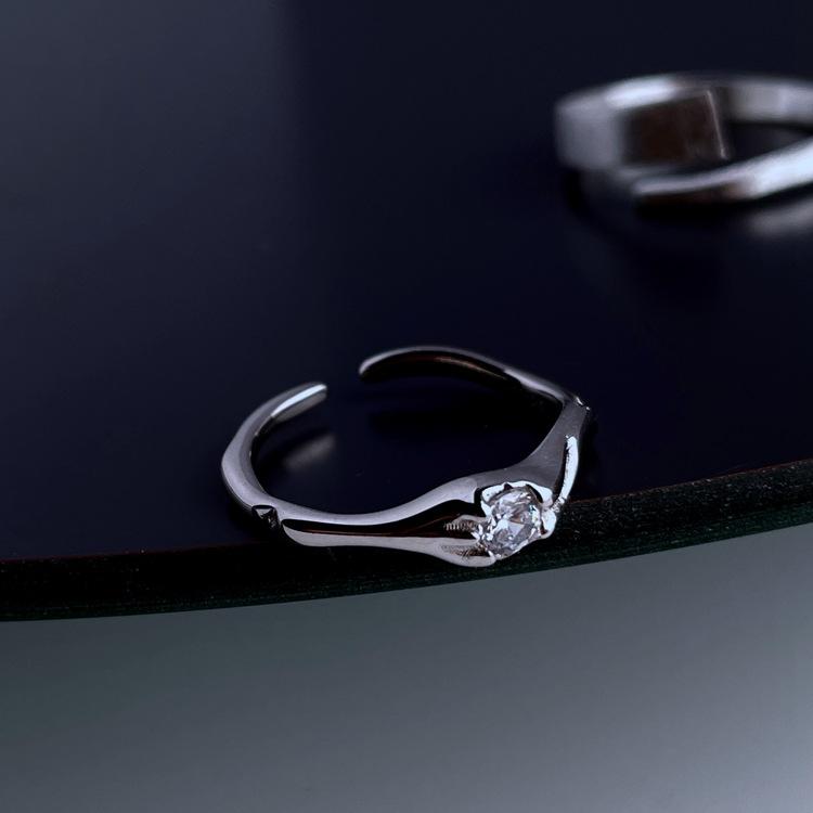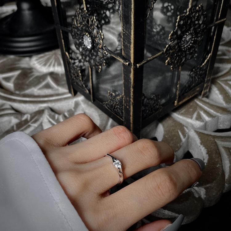Anillo de Plata de Ley S925 Suchuang Diseño Nicho Forma Especial Abierto Zirconia Anillo Diamante Simple Frío y Suave Anillo para Mujer