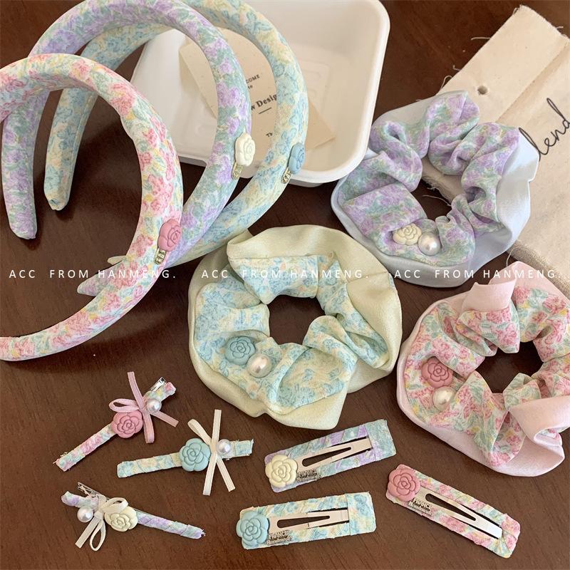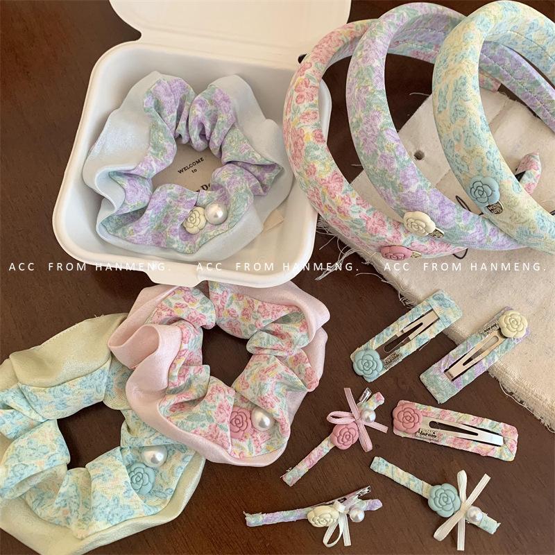 Green Floral Pearl Hairband, Pink flower floral BB clip, Blue purple flower flower BB clip, Green flower flora...