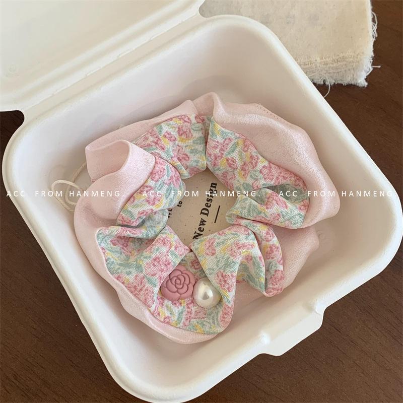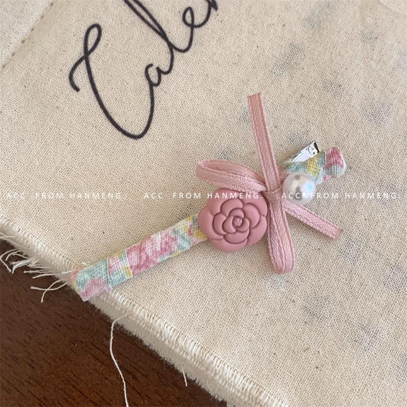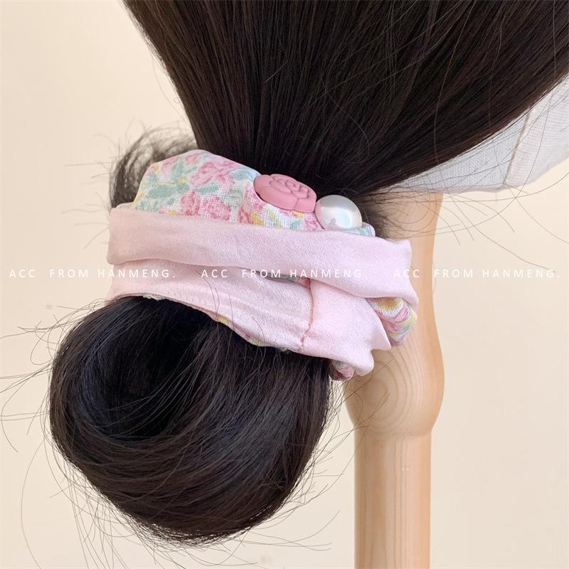 Pastoral Floral Perla Anillo para el Cabello de Intestino Grueso Lindo Dulce Rosa Clip BB Clip de Pico de Pato Banda para el Cabello Superior Craneal Alta Accesorios para el Cabello para Mujeres