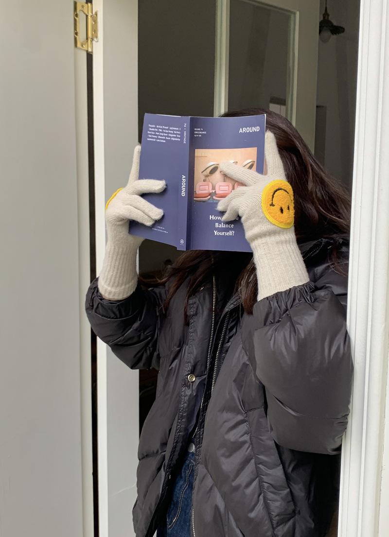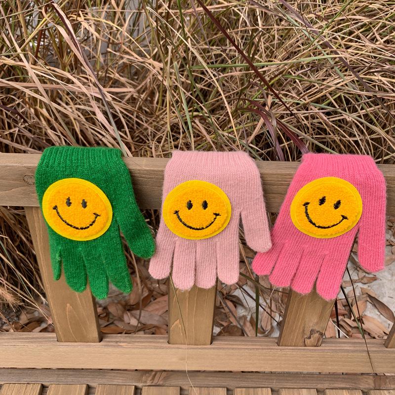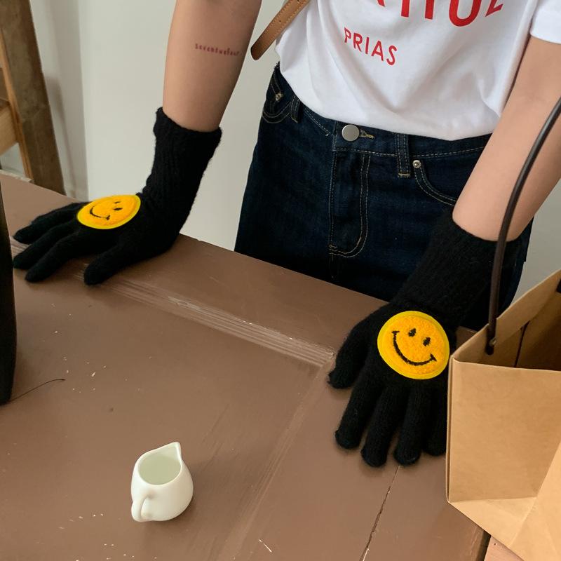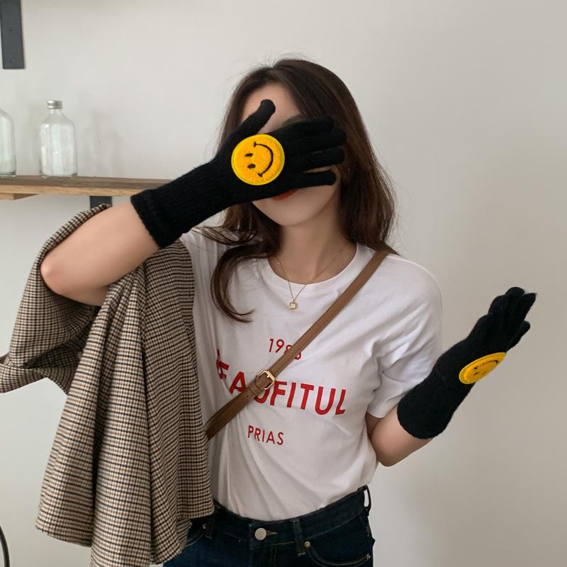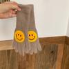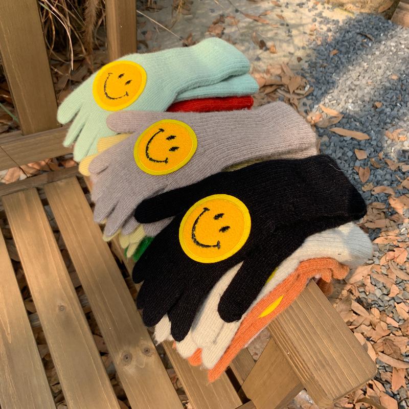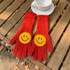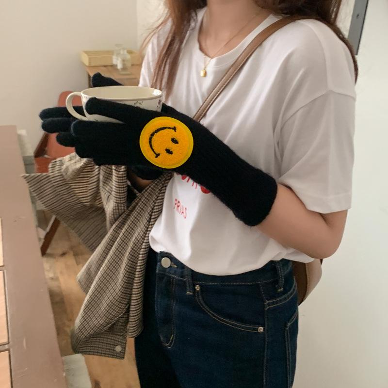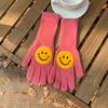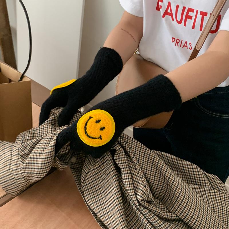 Guantes largos de punto de lana para invierno para mujer, versión coreana, lindos con carita sonriente, para dedo, para exteriores, cálidos, guantes de estudiante para hombre y mujer