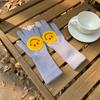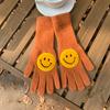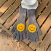 Guantes largos de lana tejidos de invierno para mujer, estilo coreano, con linda cara sonriente, con dedos en los dedos, cálidos para exteriores, para hombres y mujeres, estudiantes.