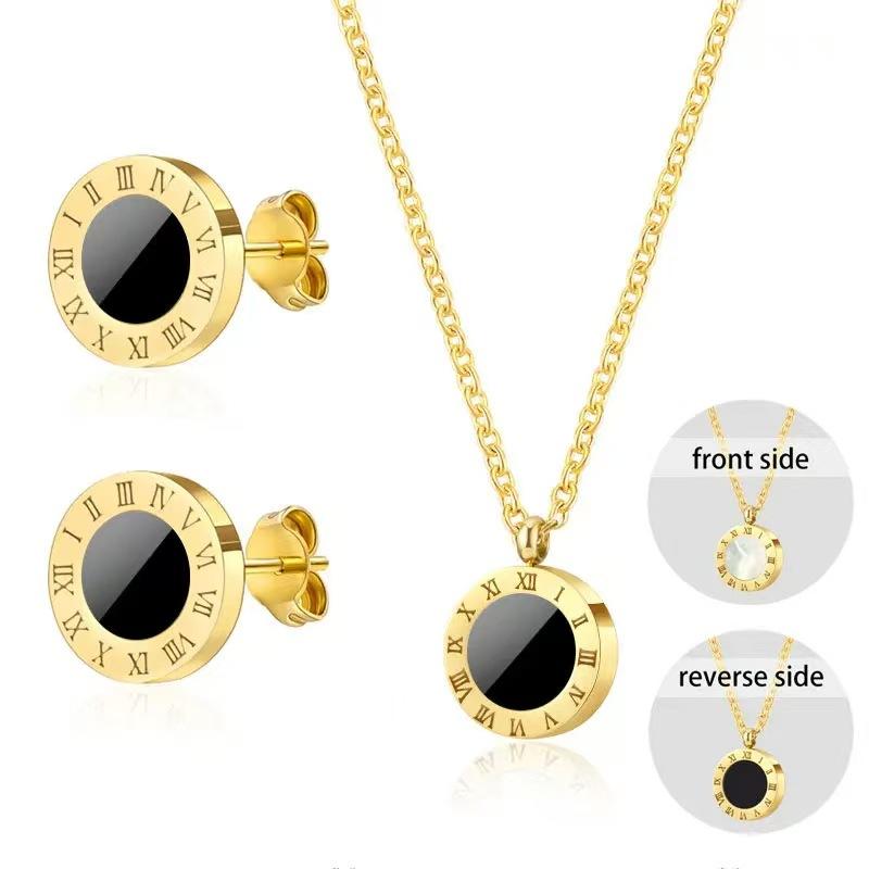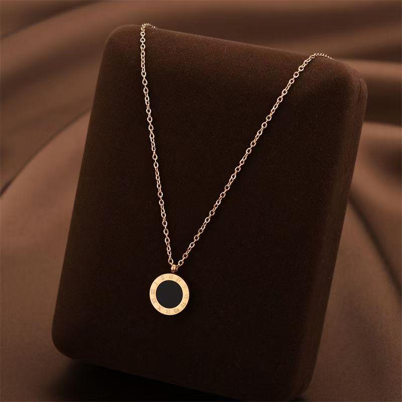 Collar romano de doble cara de acero de titanio para mujer, 2025, nuevas explosiones, colgante de 18 quilates, accesorios, cadena de clavícula, sentido de alto nivel para mujer.
