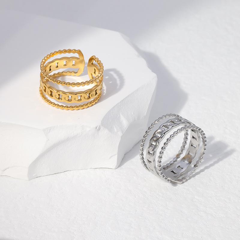 Anillo de cadena de apertura transfronteriza de Europa y Estados Unidos para mujer, anillo de acero inoxidable ajustable, anillo de acero de titanio de alto viento, venta al por mayor