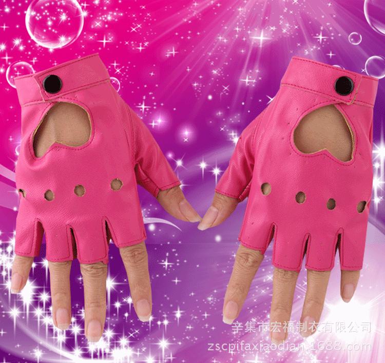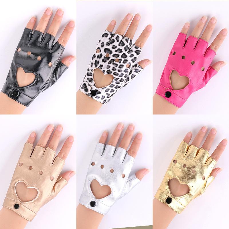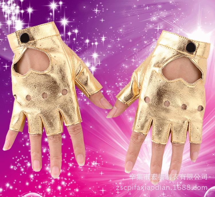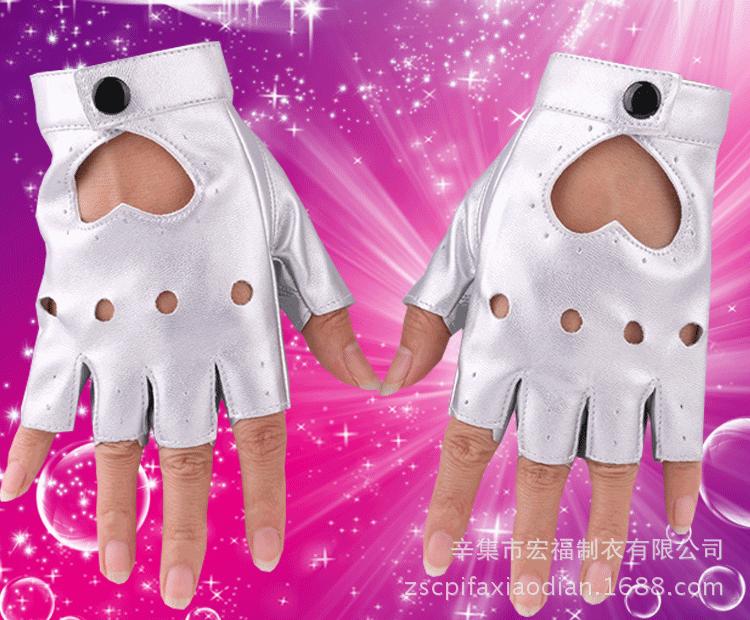 Guantes de baile para mujer, para baile callejero, punk, actuación en el escenario, guantes de medio dedo Pili, fotografía de discoteca, guantes de baile de cuero PU