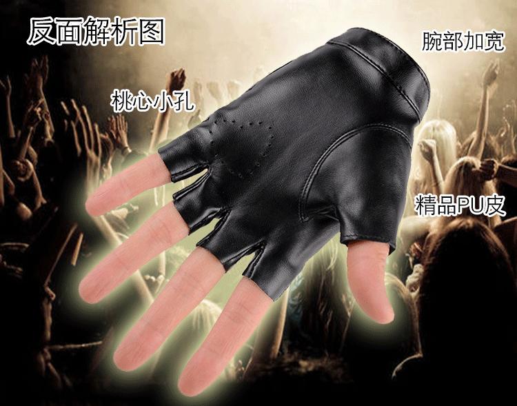 Guantes de cuero de medio dedo con tres costillas para hombres y mujeres, para baile callejero al aire libre, de cuero PU, para discotecas, guantes de baile de alto rendimiento para mujeres