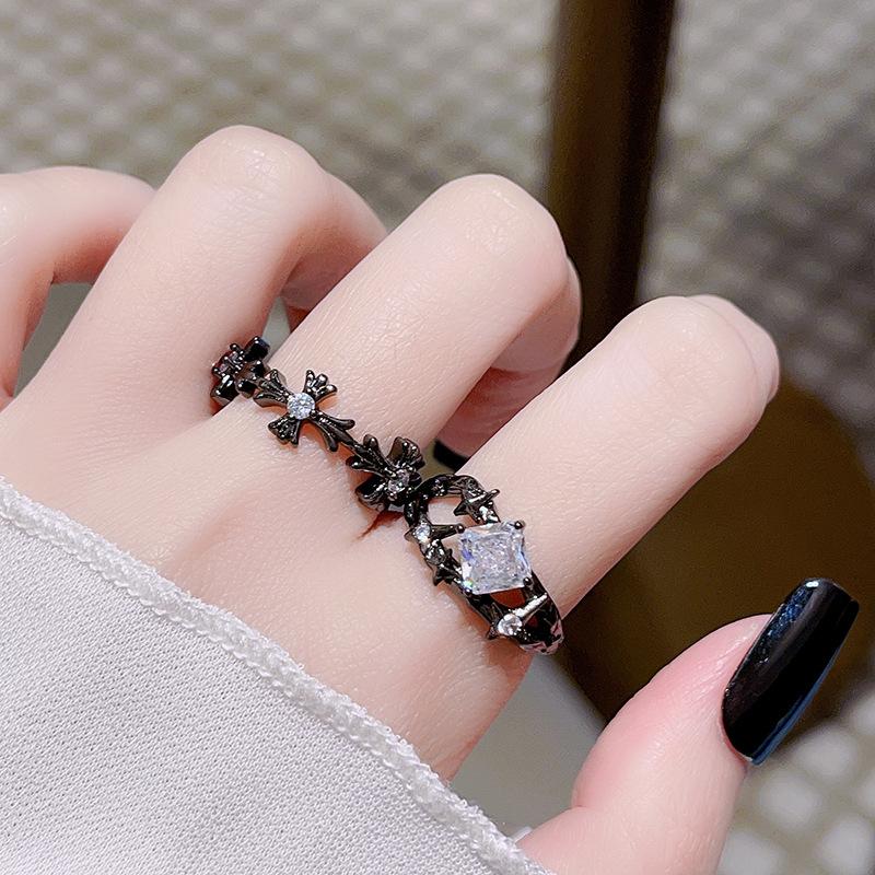 Anillo de estrella cruzada cool de moda para mujer, estilo oscuro ins, anillo retro para el dedo índice, sentido de alta gama, diseño de nicho, sentido del diseño