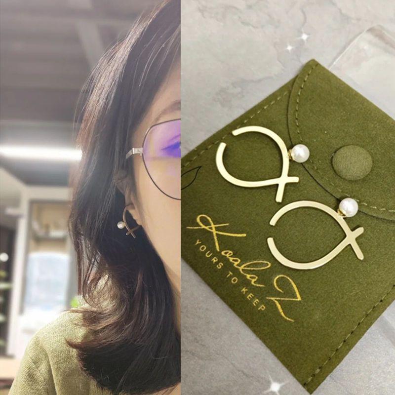 Sin dolor, sin caída de aretes colgantes de cruz X de pez pequeño con perlas sin agujero en la oreja, clip para el cartílago de la oreja, personalidad femenina, diseño de nicho moderno