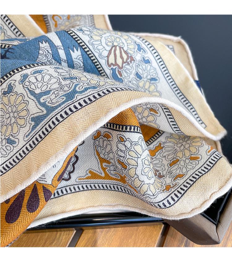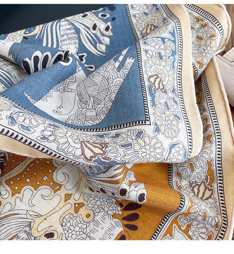 Bufanda de seda bicolor de doble cara para otoño e invierno de 2023, bufanda de lana de seda versátil retro, bufanda cálida de moda