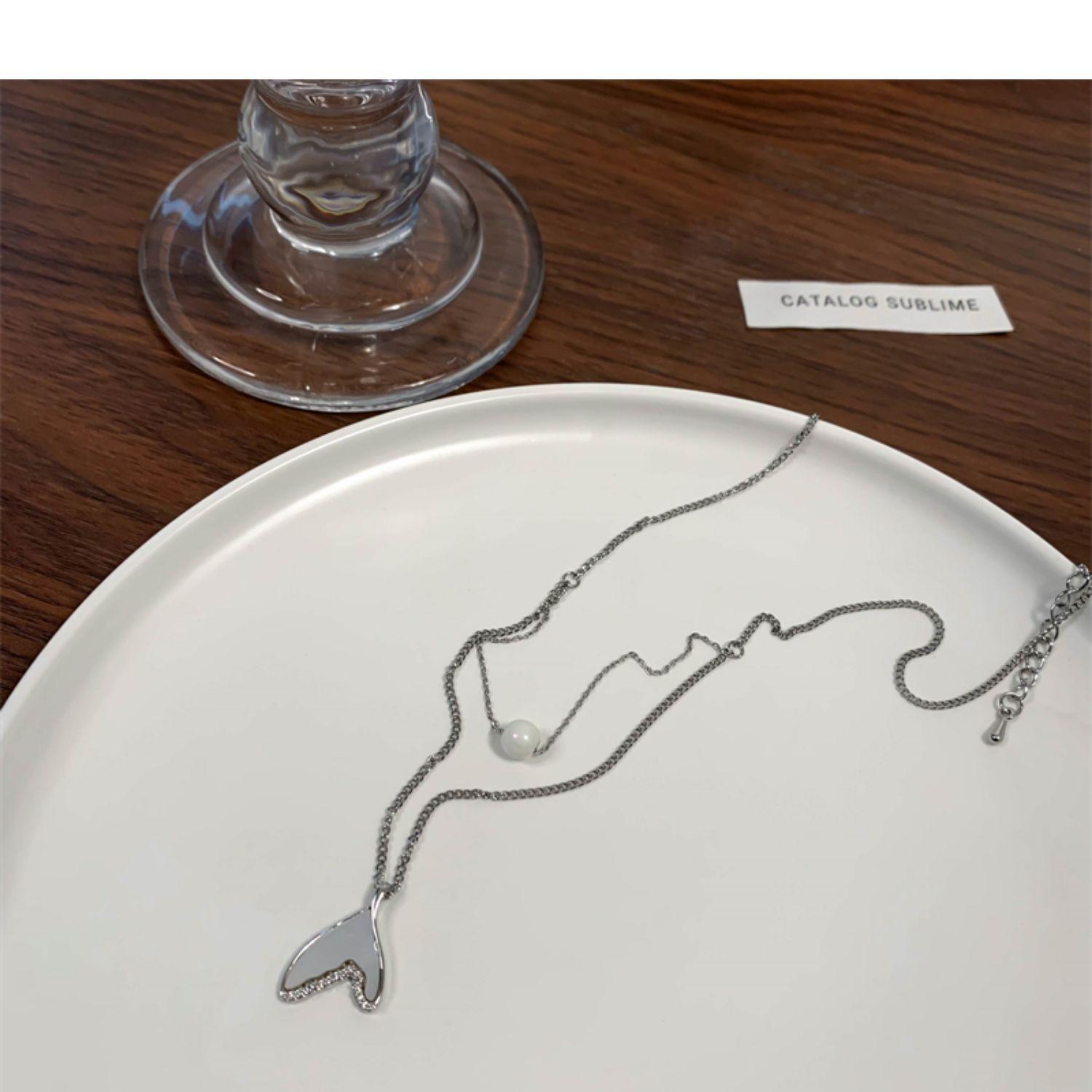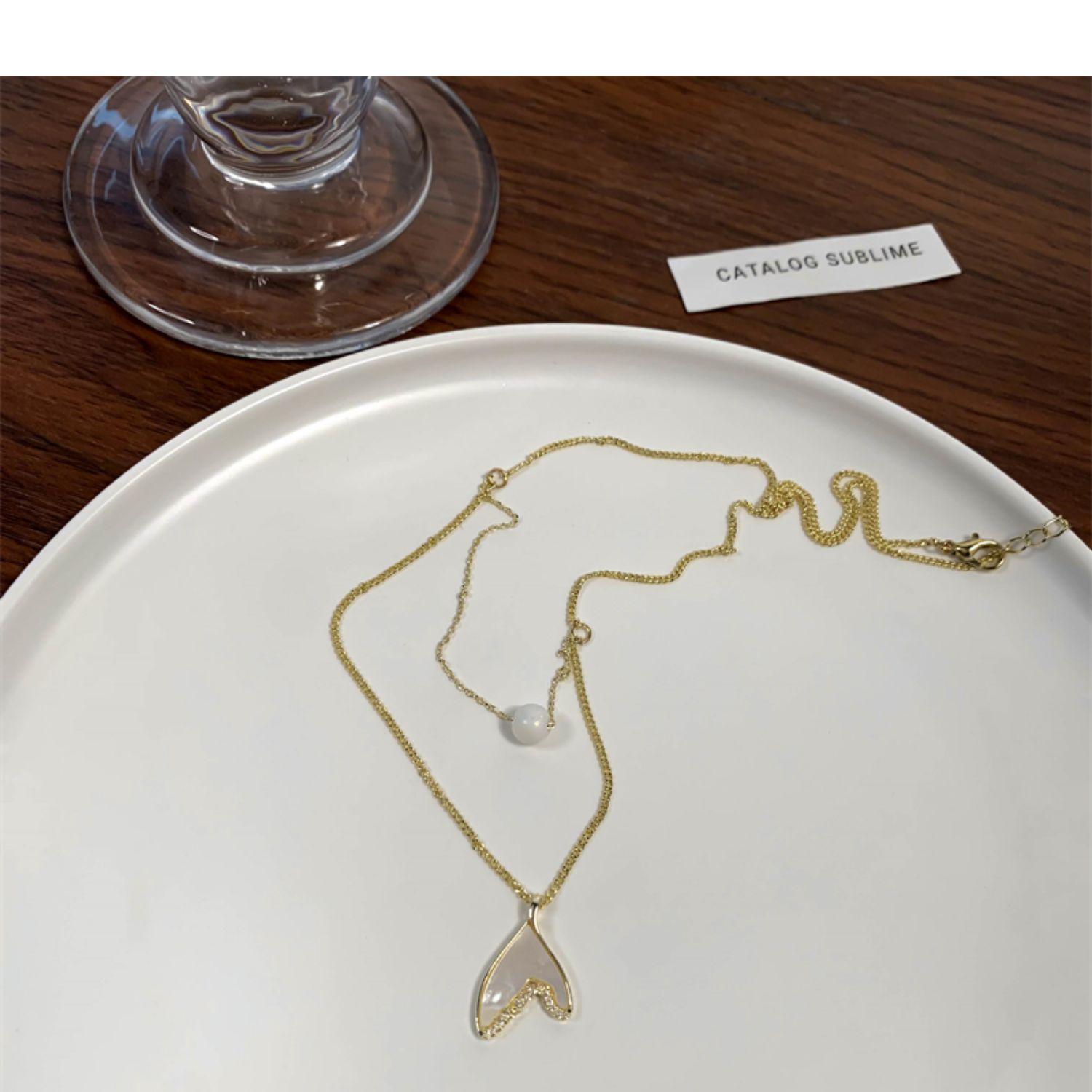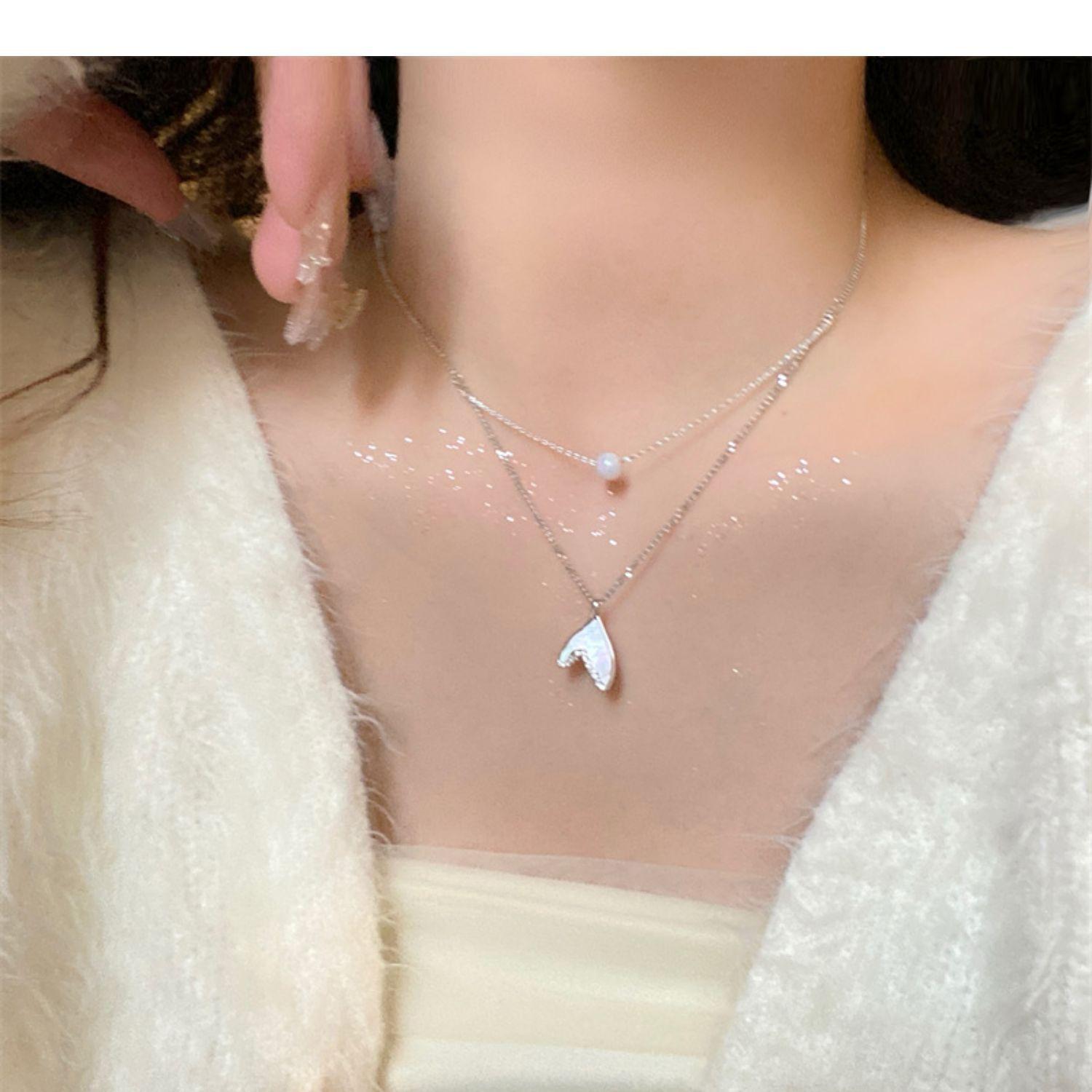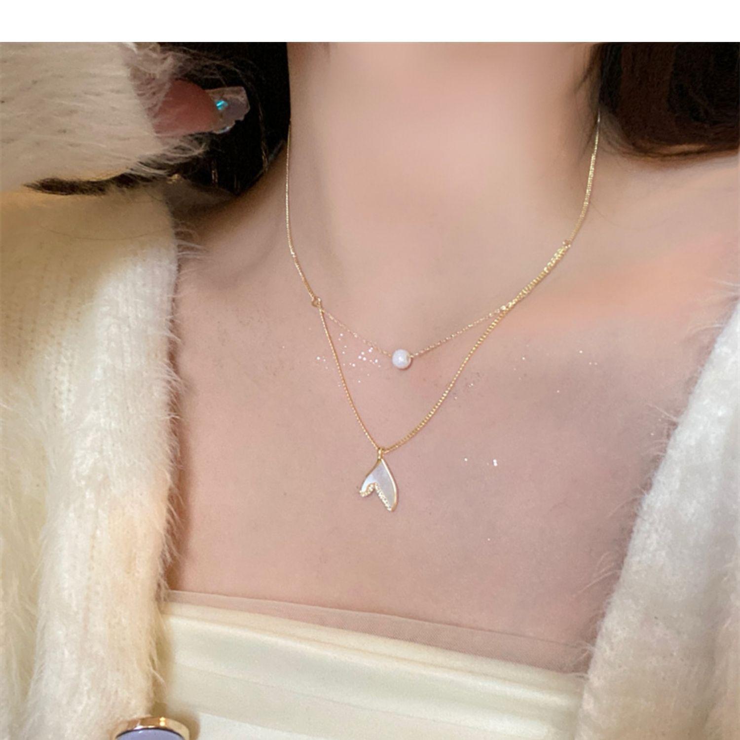 Collar de perlas de cola de pez de doble capa para mujer 2024, nuevo estilo, moderno, ligero, de lujo, diseño de nicho, collar de cadena de clavícula de alta calidad, moderno