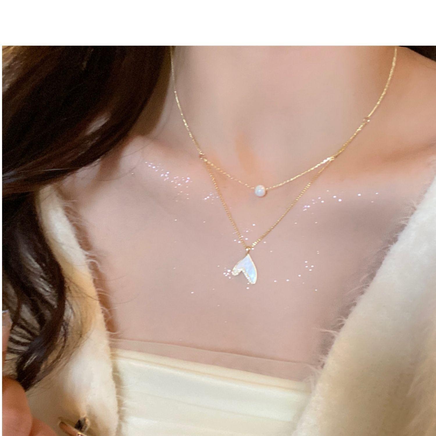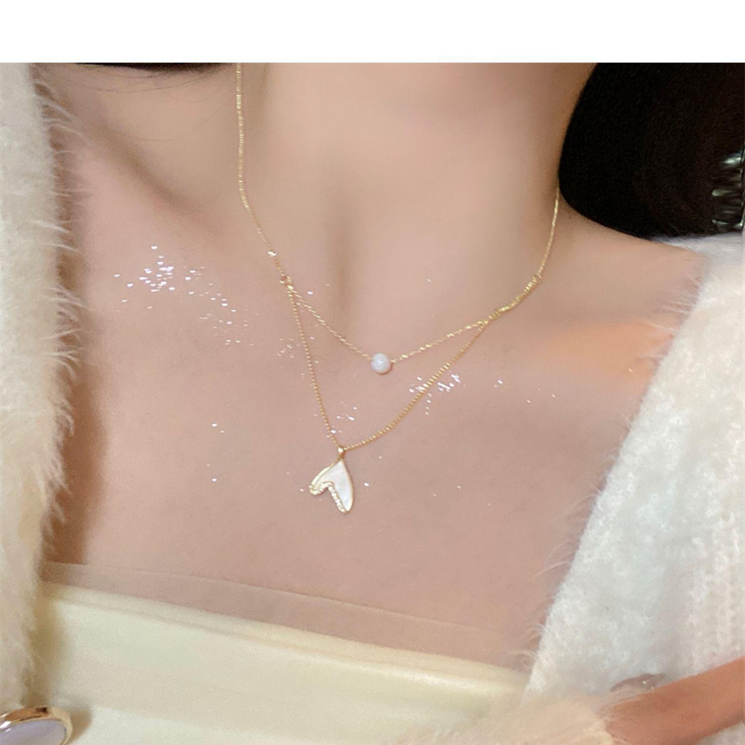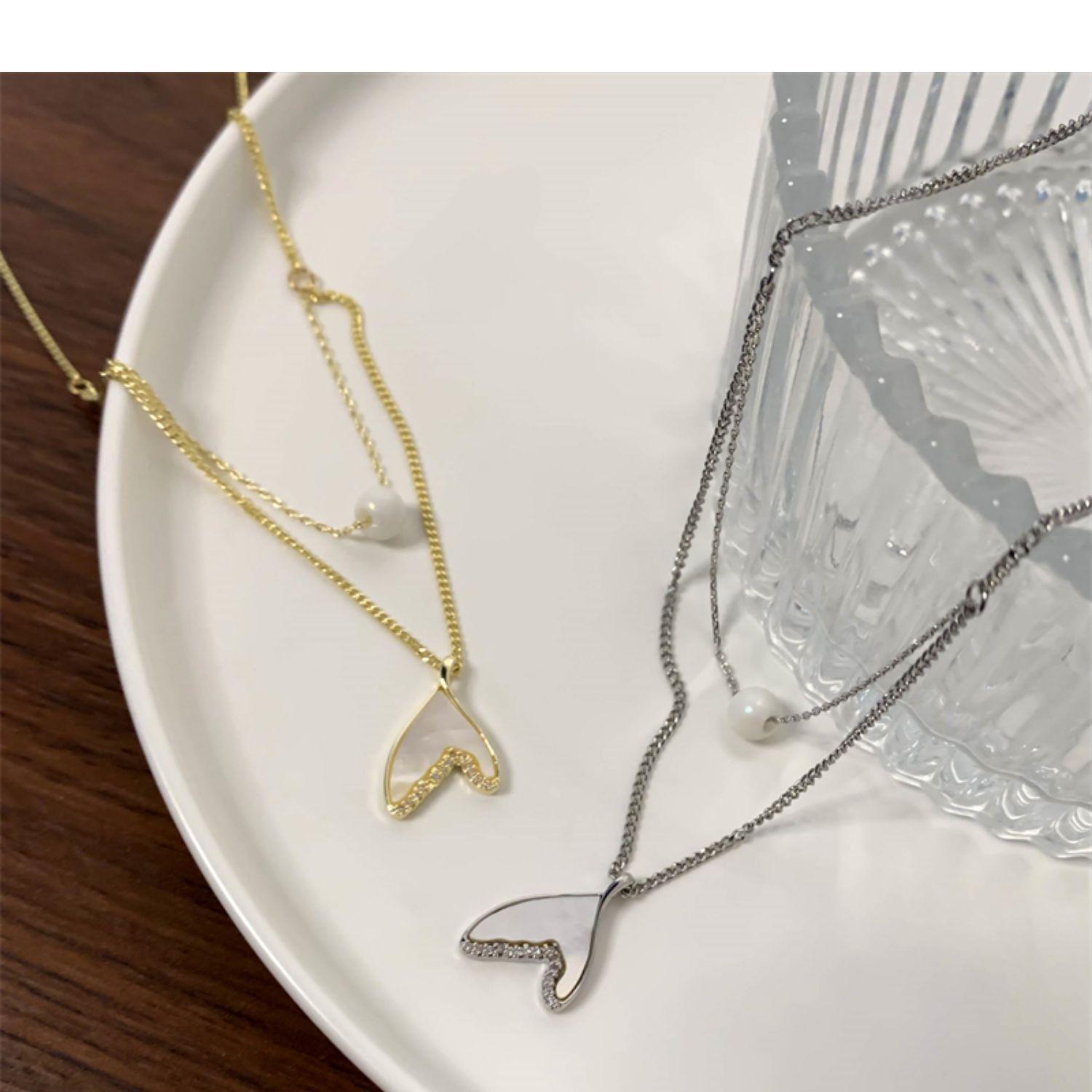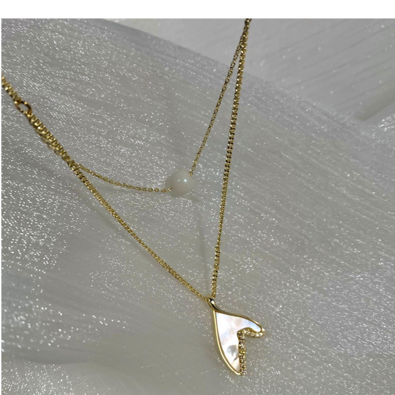 Collar de perlas de cola de pez de doble capa para mujer 2024, nuevo estilo, moderno, ligero, de lujo, diseño de nicho, collar de cadena de clavícula de alta calidad, moderno