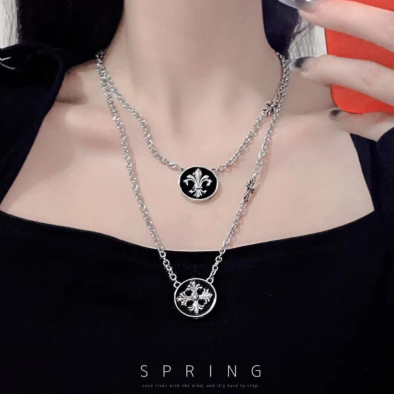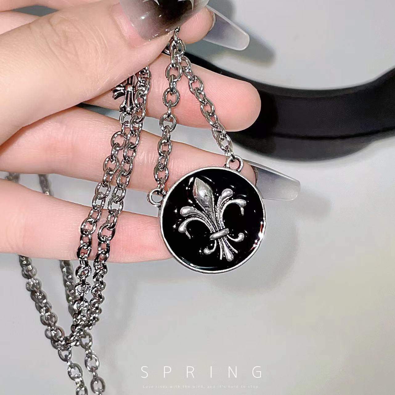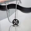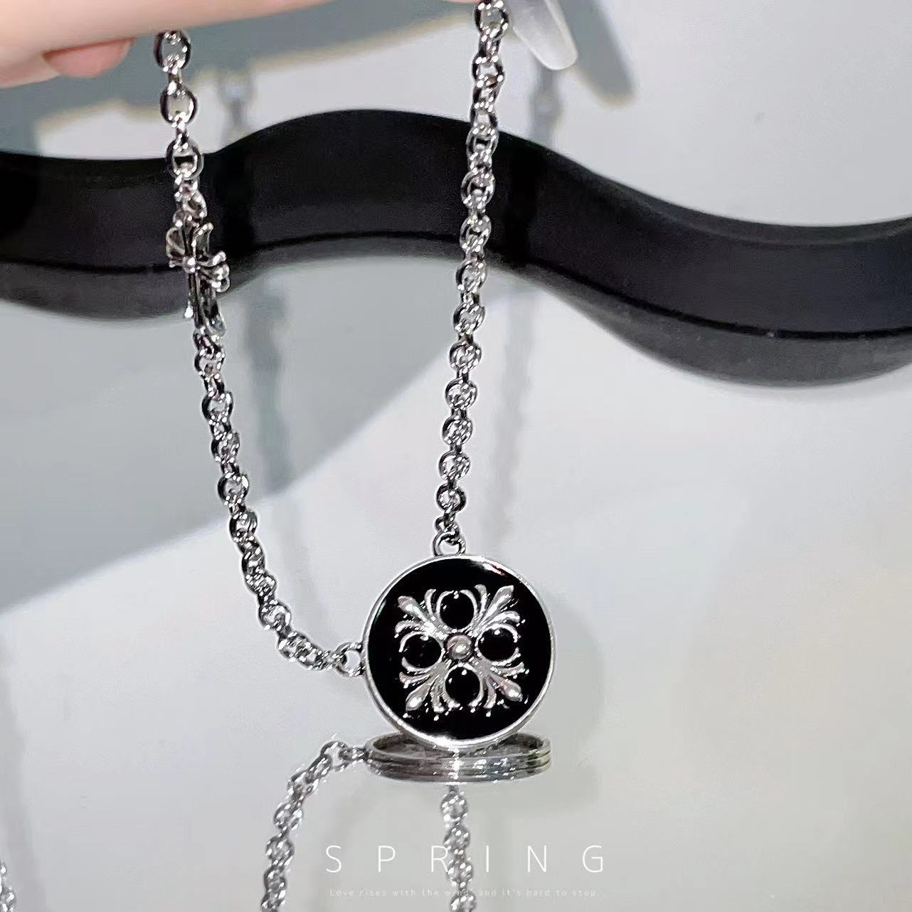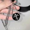 Collar con cruz redonda de estilo hip hop con esmalte negro, elegante y moderno, para mujer, con diseño de cadena de clavícula de estilo frío que combina con todo.