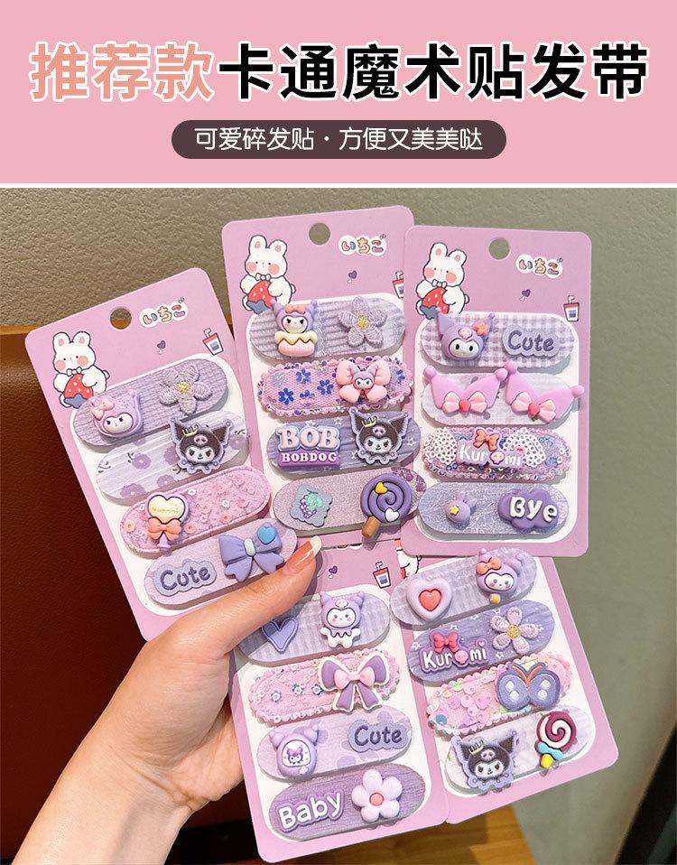 Calcomanías de flequillo de dibujos animados artefacto para cabello roto de niños bebé no daña el cabello pasador de velcro para niña acabado de cabeza accesorios para el cabello