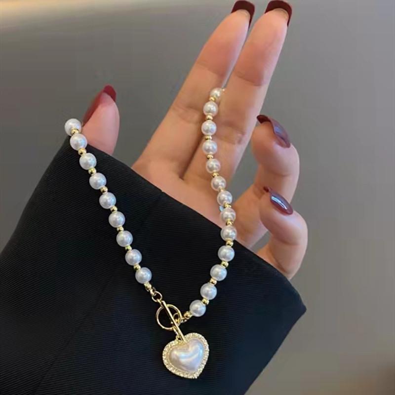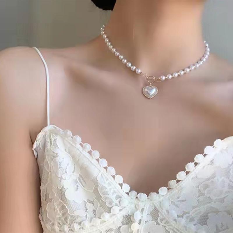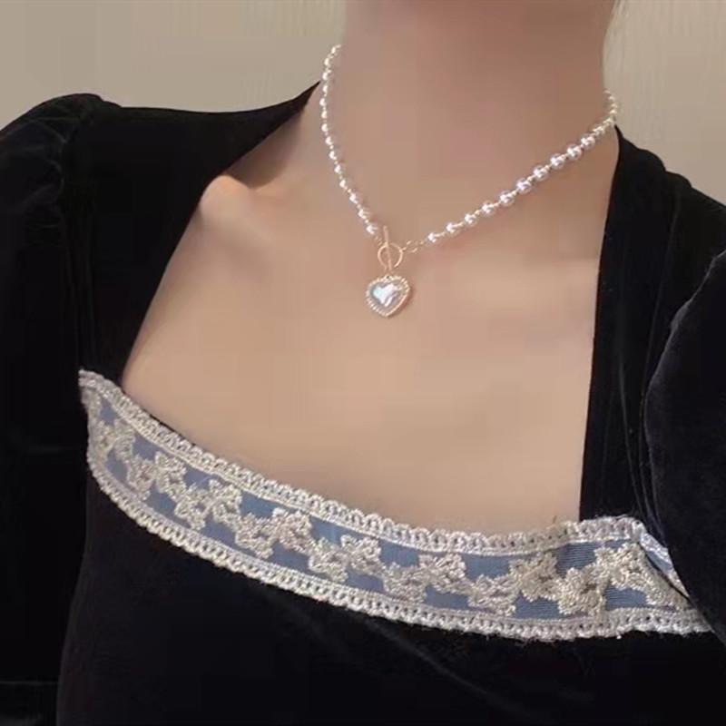 Collar coreano de perlas y diamantes con destellos de amor, de moda para mujer, ligero, de lujo, diseño de nicho, cadena de clavícula con sentido del sentido, nueva moda 2021