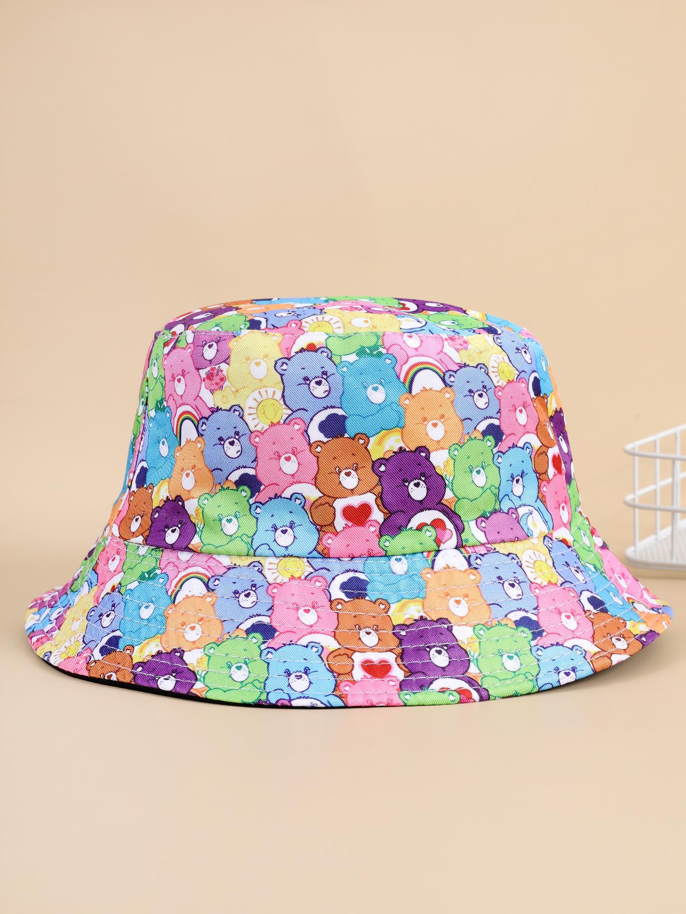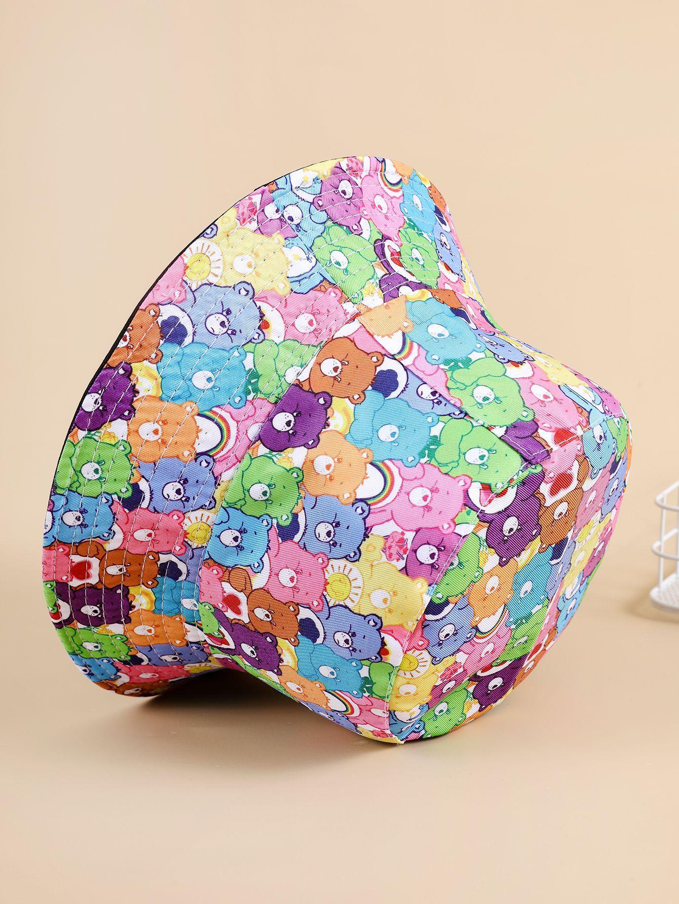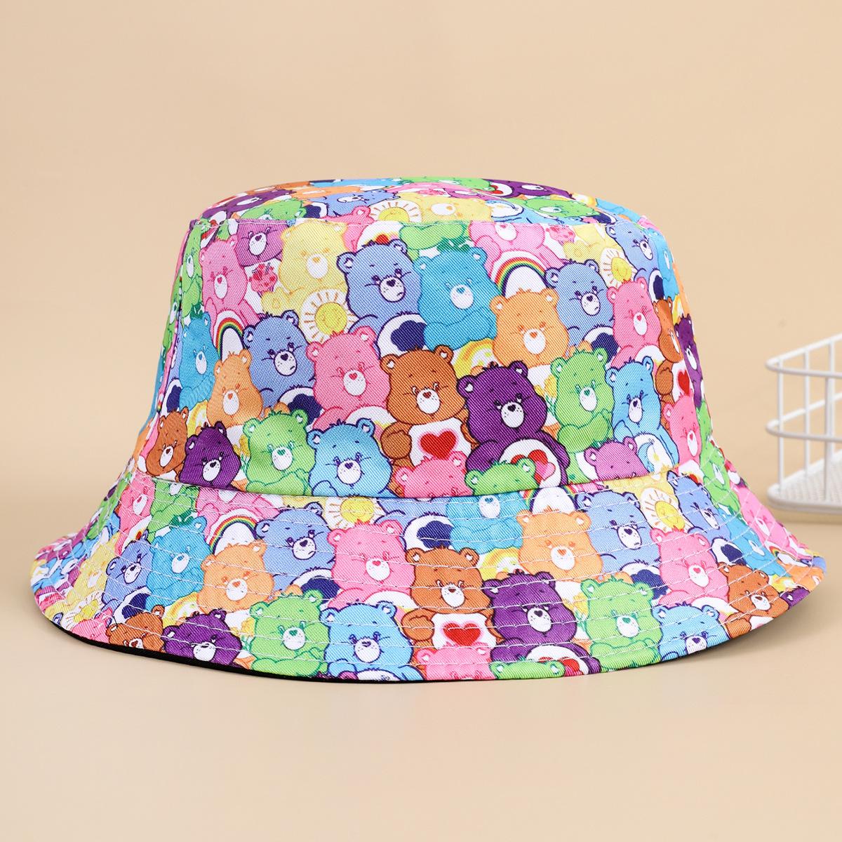 Nuevo y lindo sombrero de pescador con diseño de oso colorido de dibujos animados, transpirable y a prueba de sol, para hombres y mujeres, con protección solar al aire libre, sombrero de lavabo de doble cara.