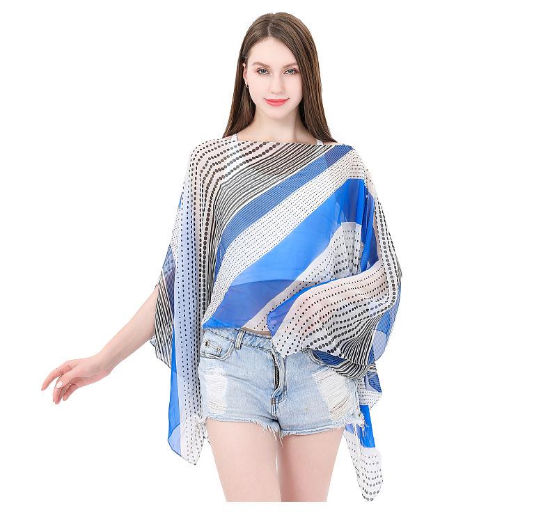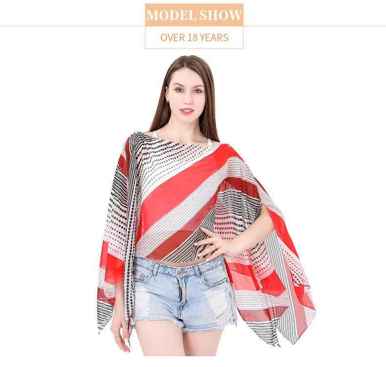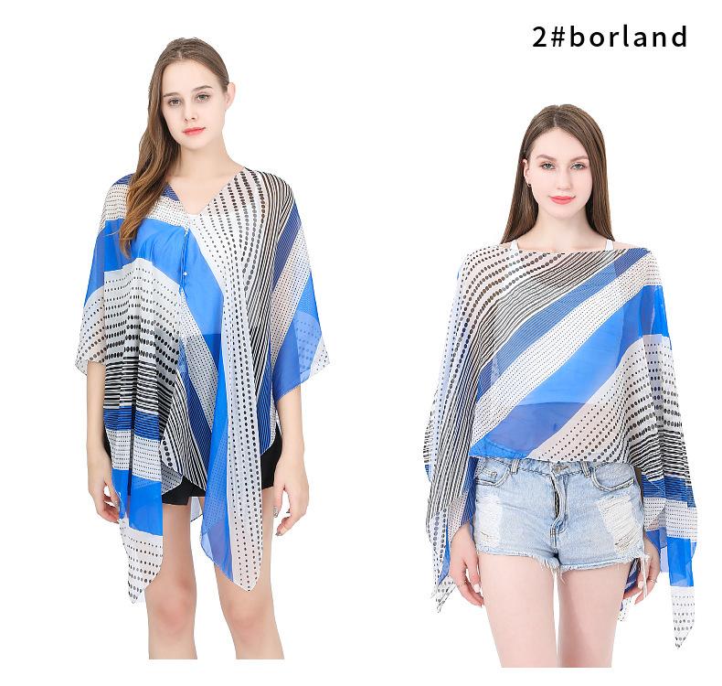 Venta directa de fábrica, bufanda de seda para playa con sombrilla, botón de perla, bufanda geométrica de manga larga, venta al por mayor, nuevo chal de gasa protector solar