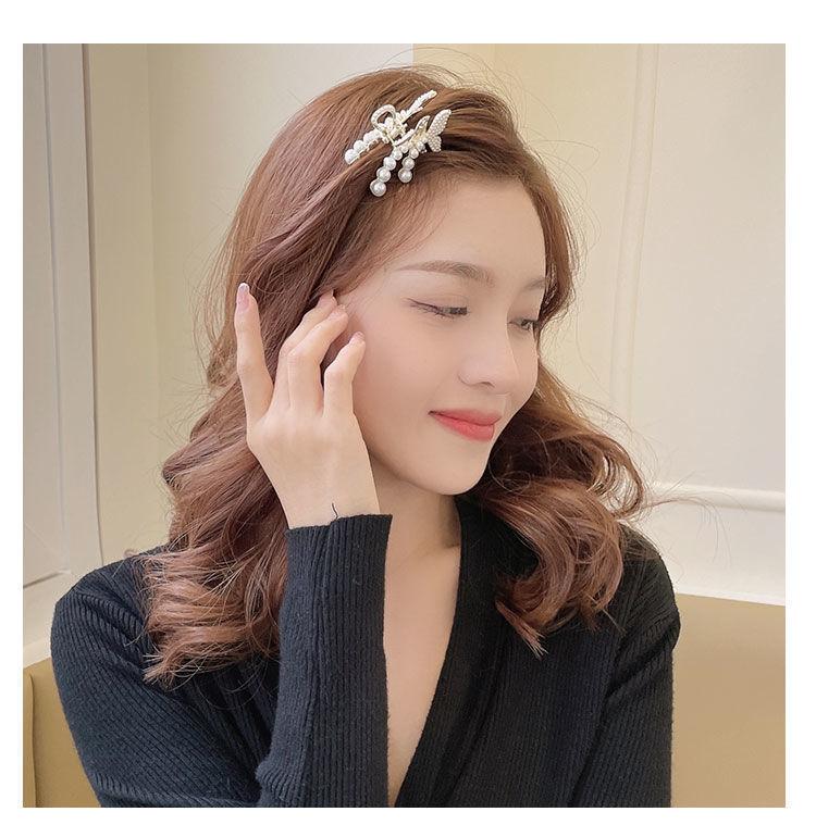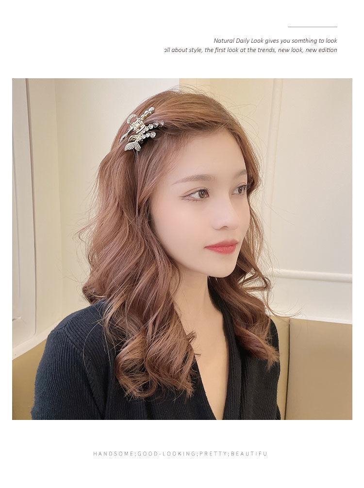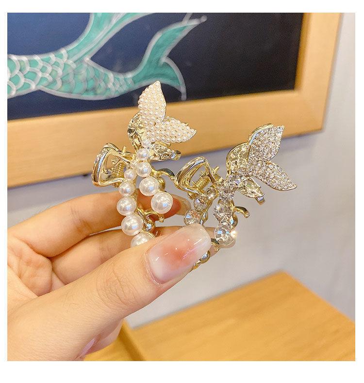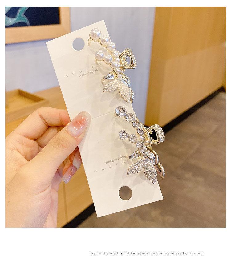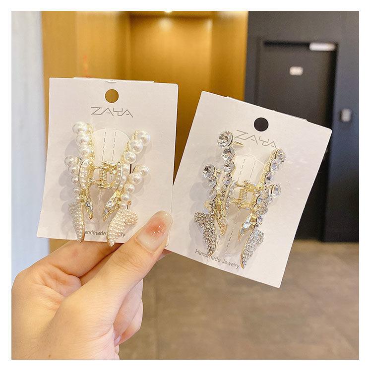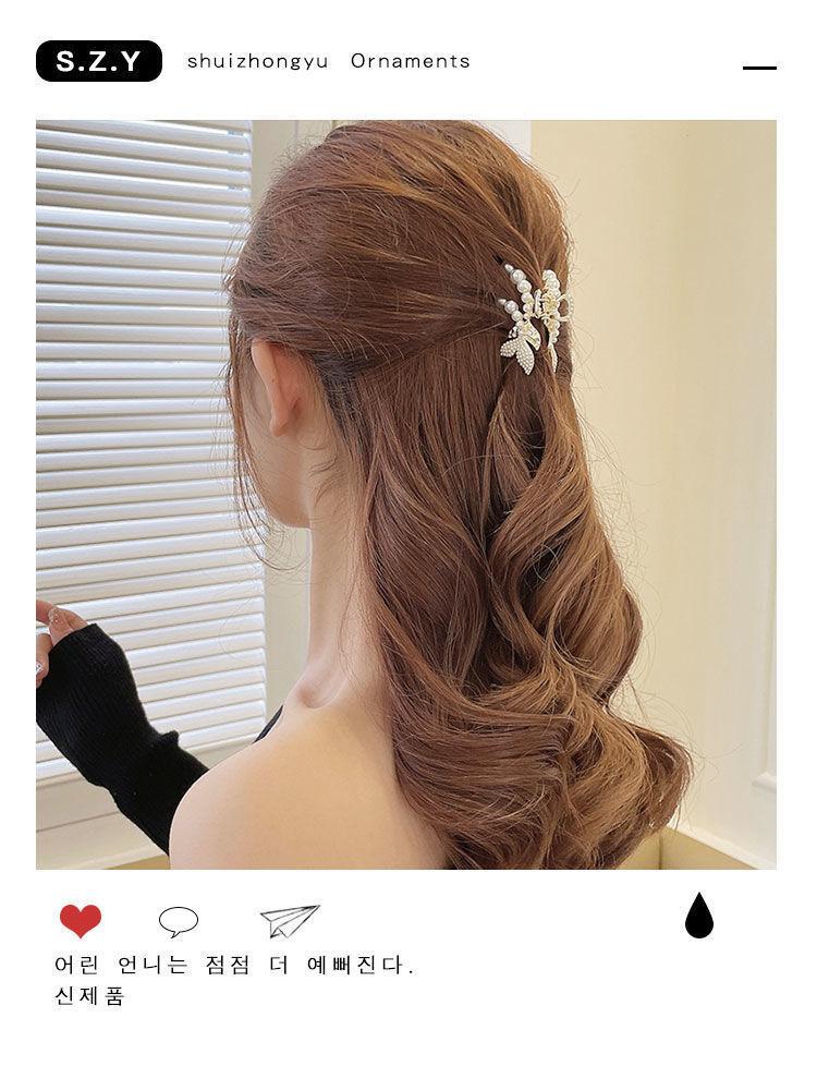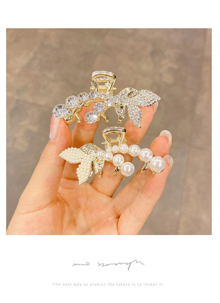 Pinza para el Cabello Semirrecogido para Mujer Pinza para el Cabello en la Parte Posterior de la Cabeza, Pequeña Pinza de Tiburón con Perlas y Pedrería, Popular 2025 Nueva Pinza para Cola de Caballo