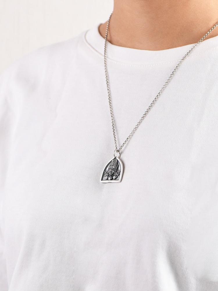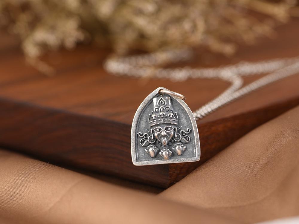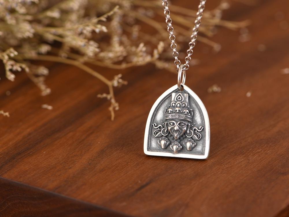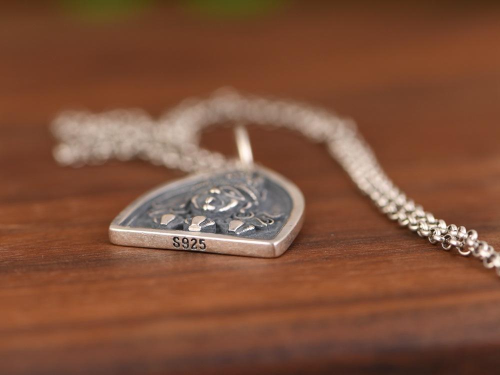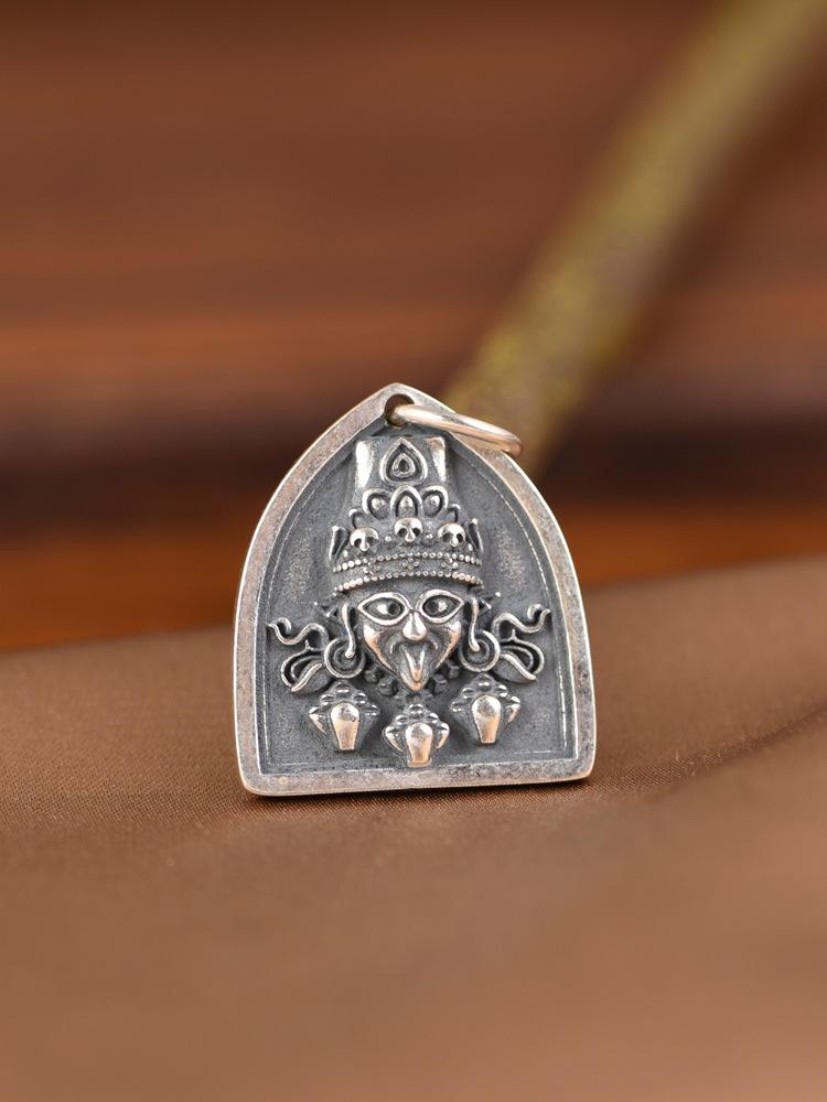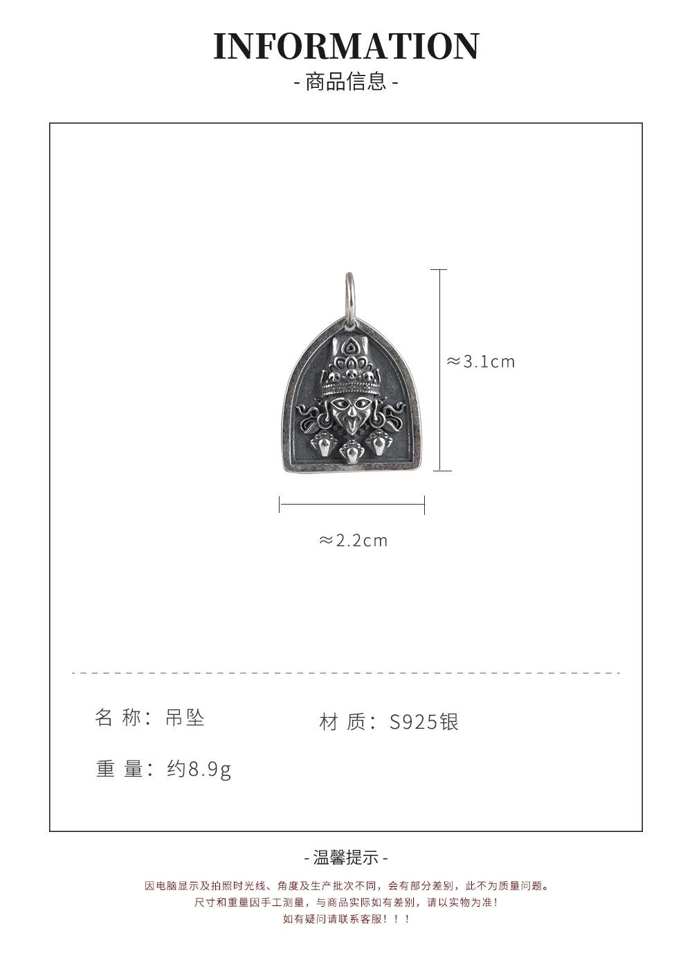 Colgante de plata S925 con diseño de estupa antigua retro y retratos de rey ciervo dorado, colgante de plata zakilam para hombres y mujeres.