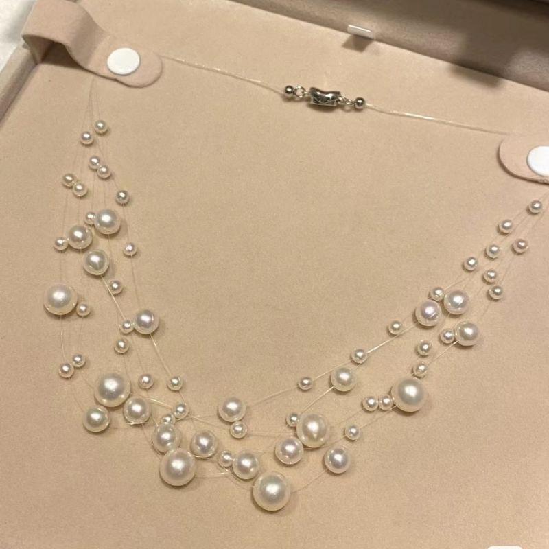 Hermoso y sencillo collar de perlas multicapa de estilo coreano, cadena de clavícula de línea de pescado transparente personalizada, collar estilo celebridad de Internet
