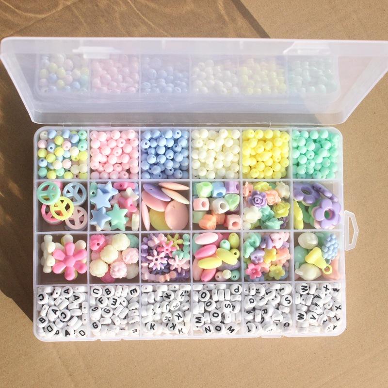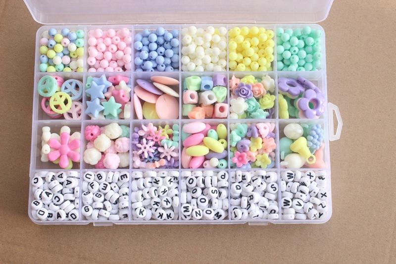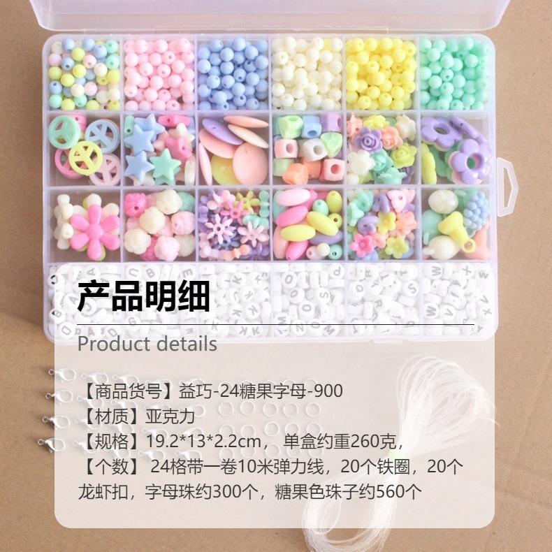 Juguete educativo de cuentas para niños, cuentas del alfabeto inglés, caja de 24 cuentas de caramelo, color primavera, plástico Kandi