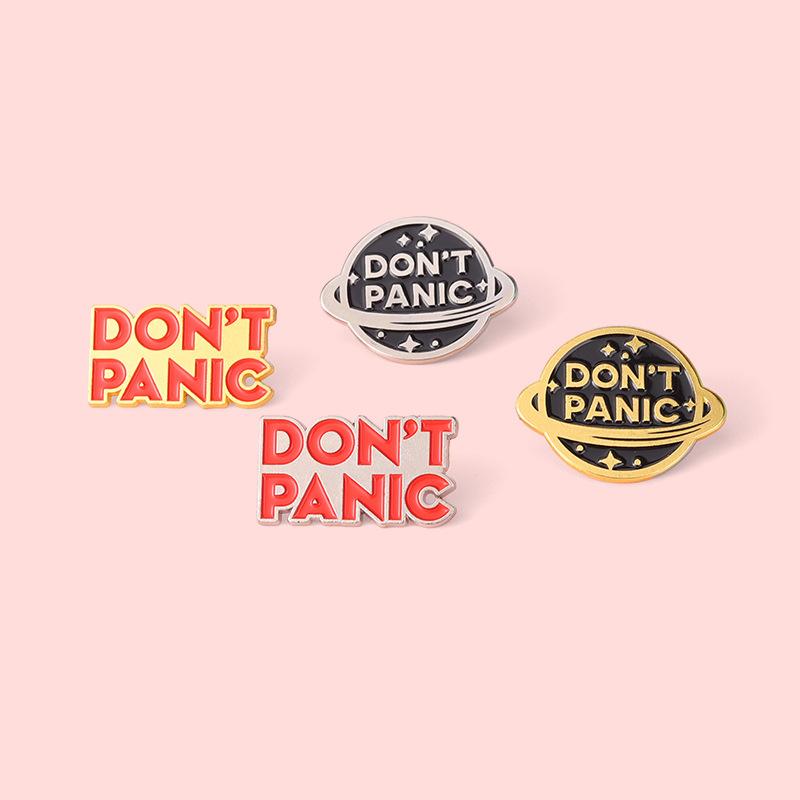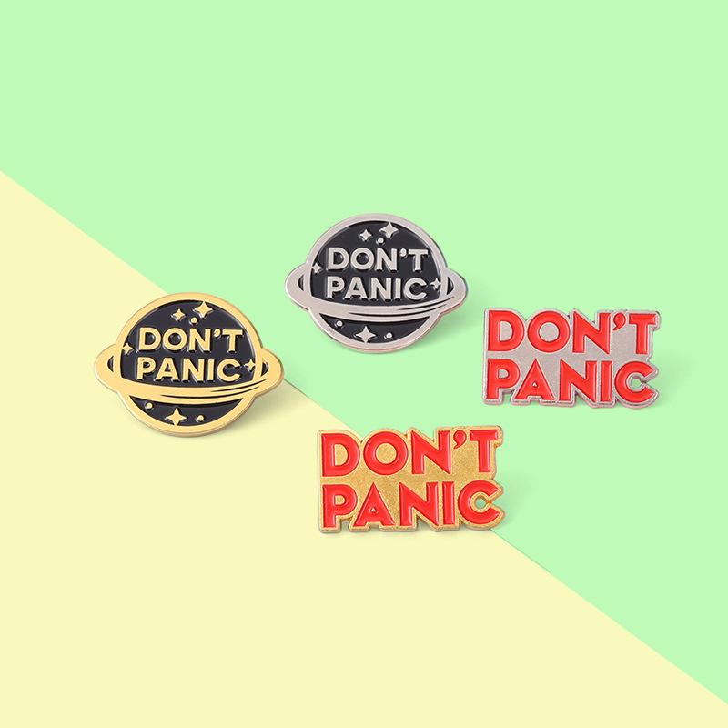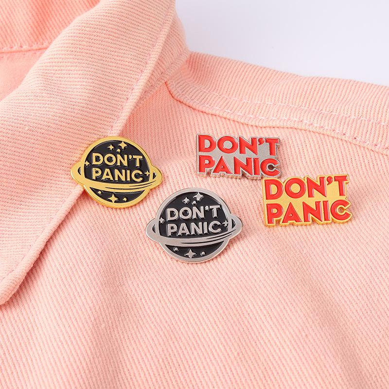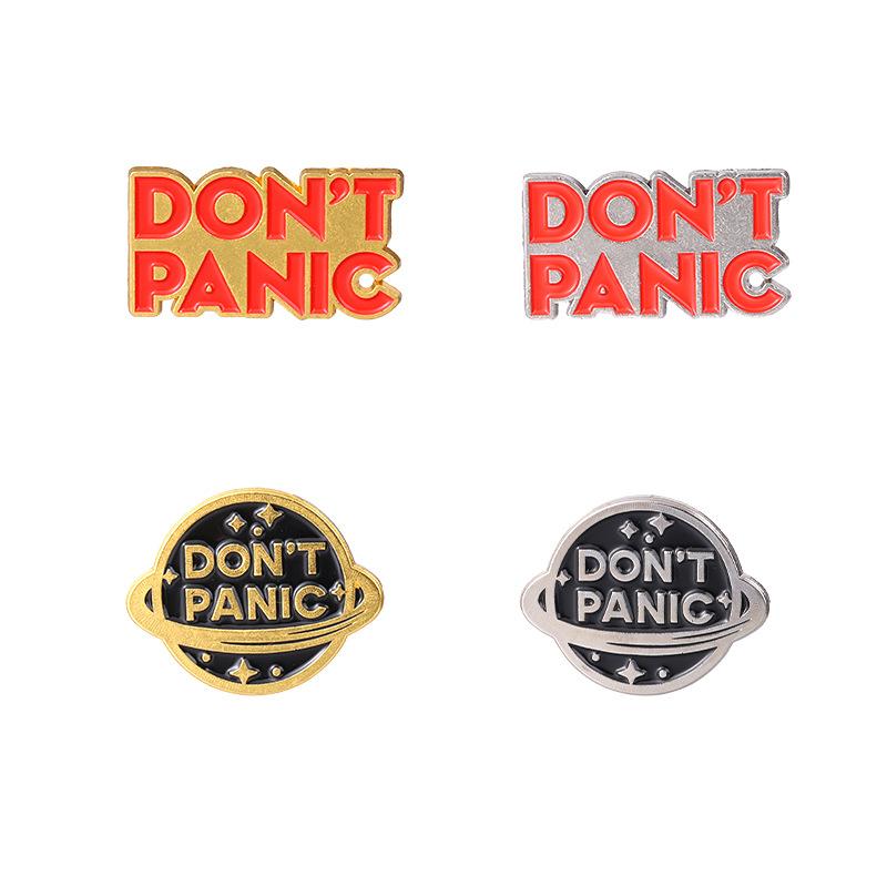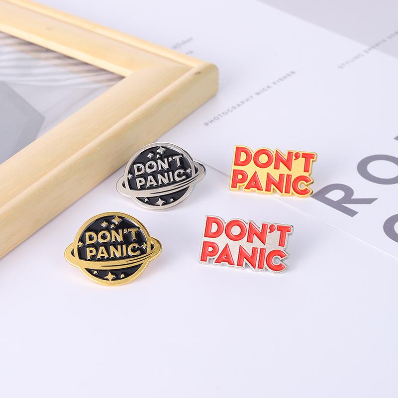 Europa y Estados Unidos No cunda el pánico planeta broche inglés insignia de metal hebilla de alfiler de dibujos animados insignia al por mayor