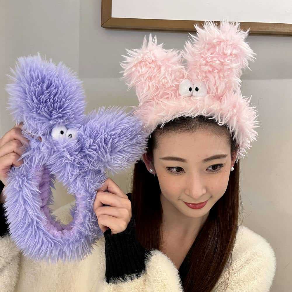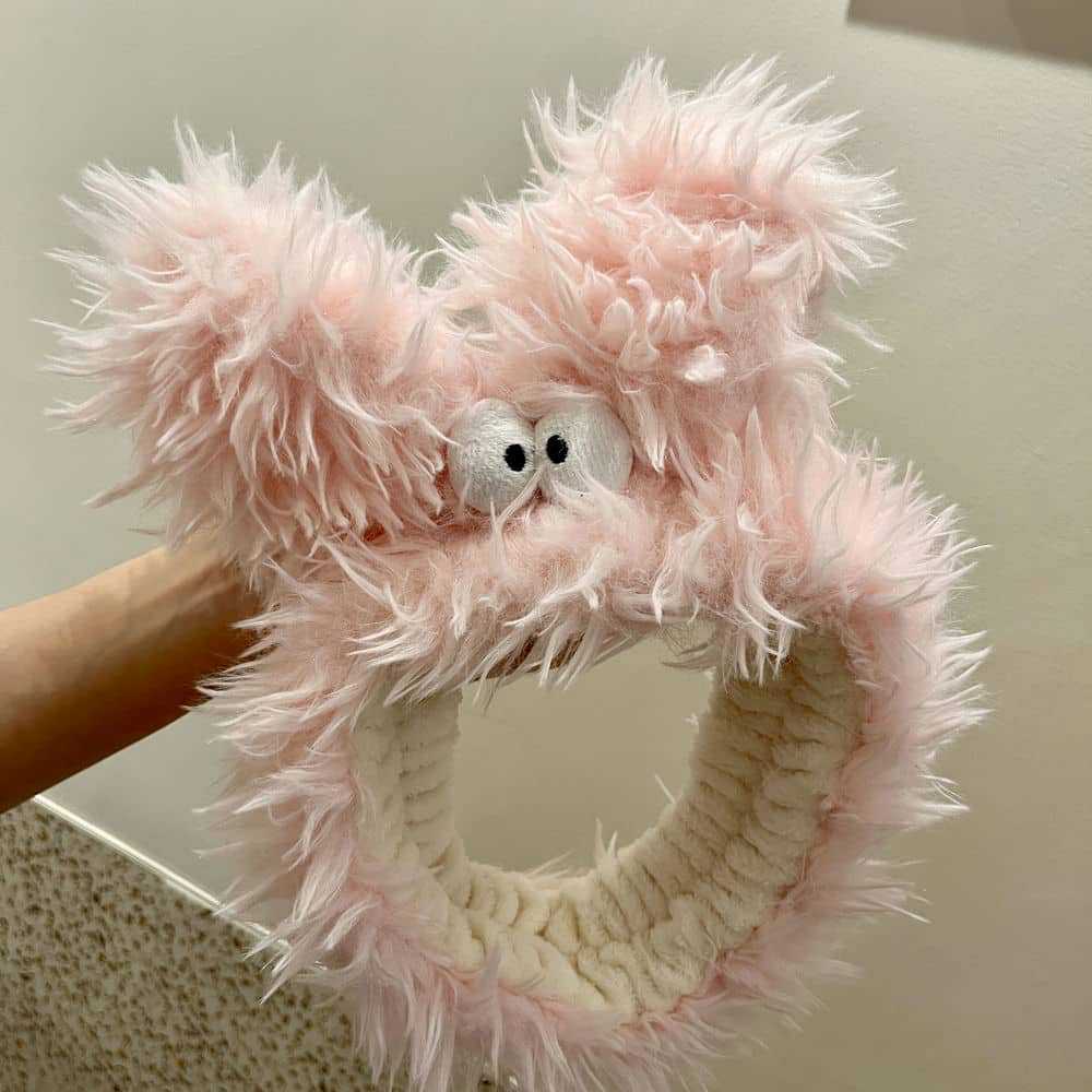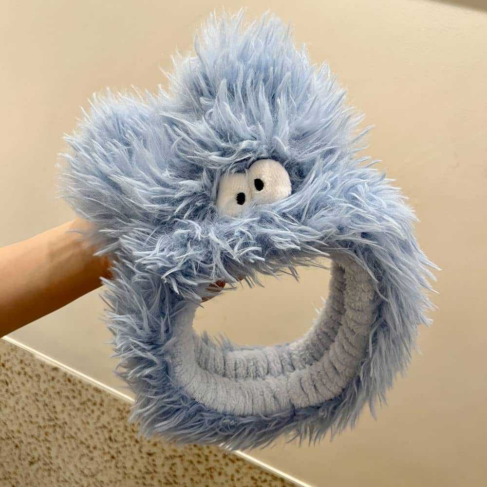 Diadema de peluche con ojos grandes, linda y fea, para niña, con forma de corazón, divertida, para lavarse la cara, práctica, para maquillaje, accesorios para el cabello